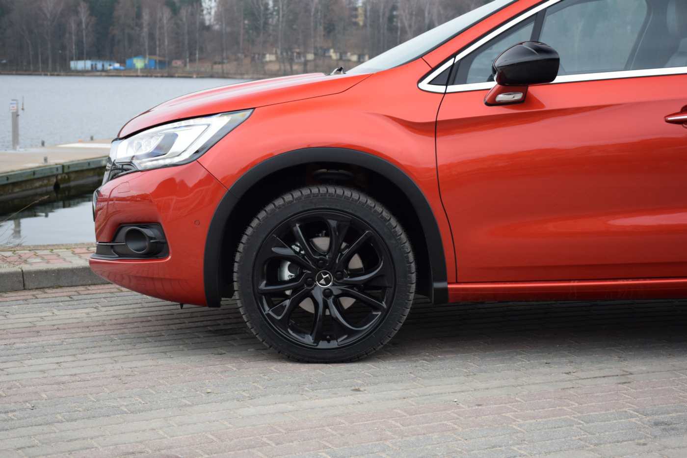 W zestawieniu z klasycznym hatchbackiem Crossback ma taką samą długość (428 cm) i szerokość (181 cm), ale jest jednocześnie 4 cm wyższy (154 cm), co zawdzięcza głównie 3 cm większemu prześwitowi. Pod względem wizualnym uterenowiony model wyróżnia się dodatkowymi np. czarnymi nakładkami na nadkolach i progach, srebrzystymi relingami oraz czarnymi felgami, grillem i spojlerami. Crossback, jako jedyny w gamie, jest oferowany z nowym pomarańczowym lakierem metalizowanym. Za to klasycznego hatchbacka DS4 możemy zamówić z dwukolorowym nadwoziem wybierając jeden z czterech kolorów dachu. Biorąc pod uwagę liczbę kolorów w gamie mamy więc 38 możliwości kombinacji.