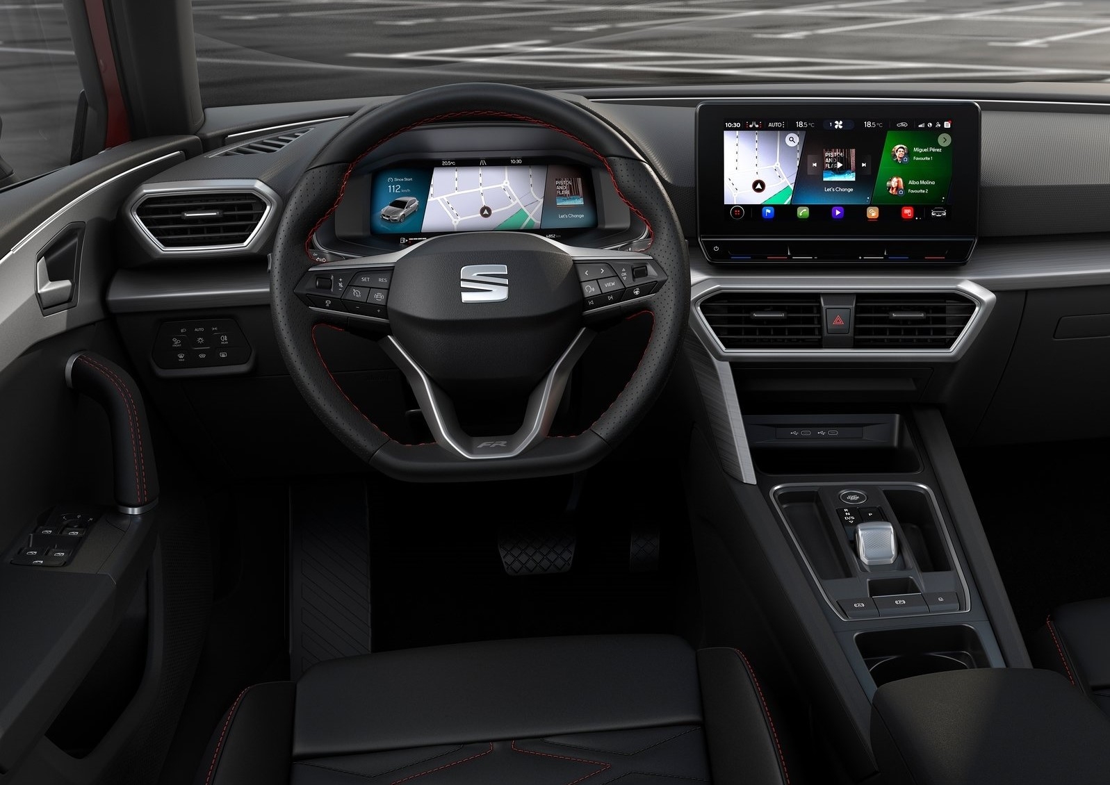Kluczowym elementem systemu łączności Leona jest 10,5-calowy wirtualny kokpit zastepujący tradycyjne zegary. Standardowy system multimedialny posiada 8,25-calowy ekran, który można połączyć ze smartfonem. Na bardziej rozbudowany Navi System składa się 10-calowy ekran Retina z nawigacją 3D, funkcją sterowania głosem oraz rozpoznawania gestów. Dzięki opcjonalnemu schowkowi z funkcją bezprzewodowego ładowania telefonu i wzmacniaczem sygnału, spełniającemu standardy Qi, użytkownicy nie muszą martwić się utratą zasilania w urządzeniach. Natomiast specjalna jednostka łączności online z wbudowaną kartą SIM zapewni stałą łączność ze światem cyfrowym.