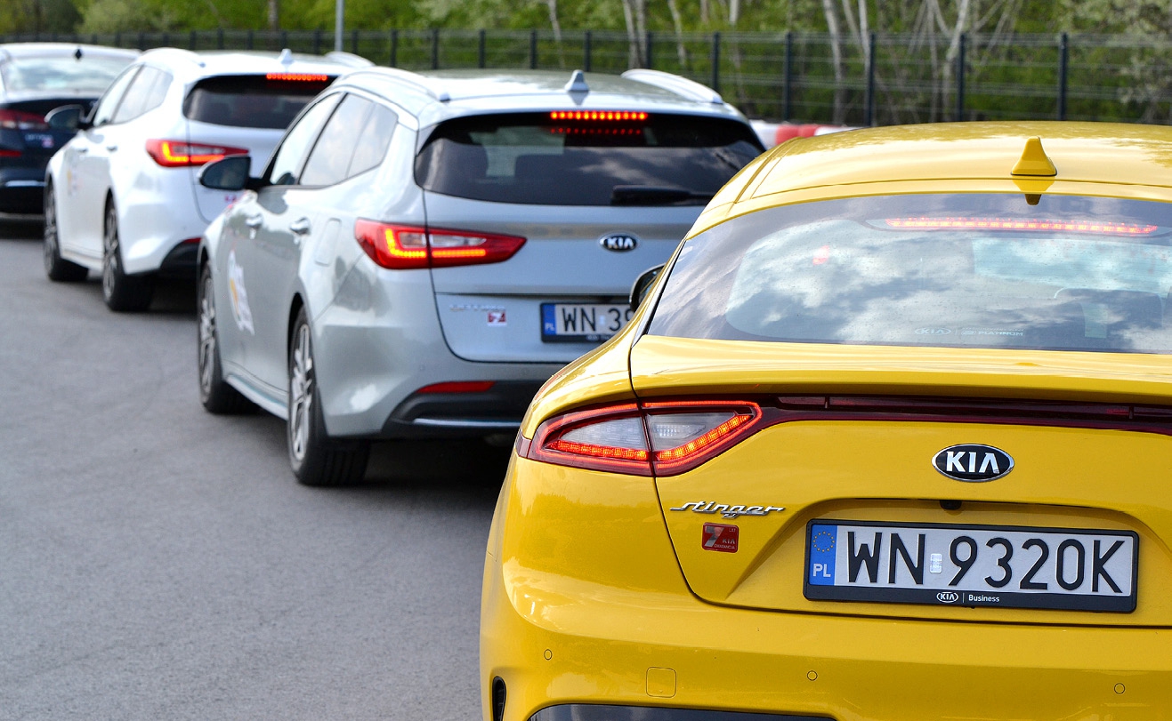 Partnerem szkolenia z Modlinie była Kia, która użyczyła do jazd niemal pełną gamę swoich modeli: od typowo flotowego Ceeda, poprzez elektrycznego e-Niro, aż do tylnonapędowego Stingera. Uczestnicy testów po raz pierwszy mogli też poznać najnowszy model e-Soul.
