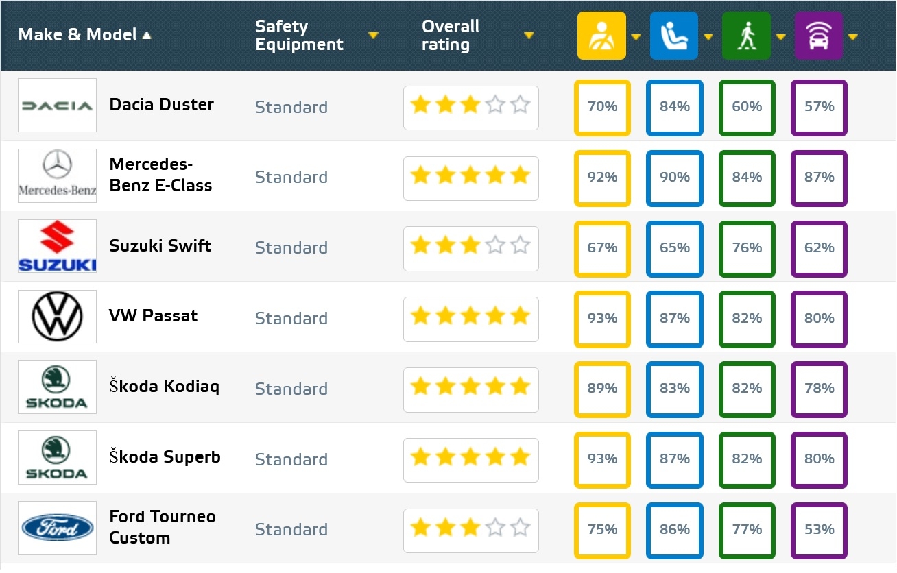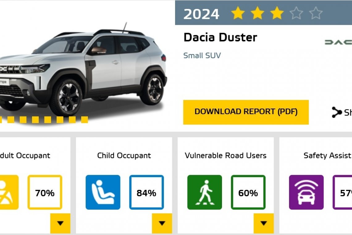 Nie wszystkie przebadane auta poradziły sobie na piątkę. Po trzy gwiazdki otrzymały Dacia Duster, Suzuki Swift i Ford Tourneo Custom (4 gwiazdki w wersji Safety Pack). Na cztery gwiazdki oceniono także Hondę CR-V.