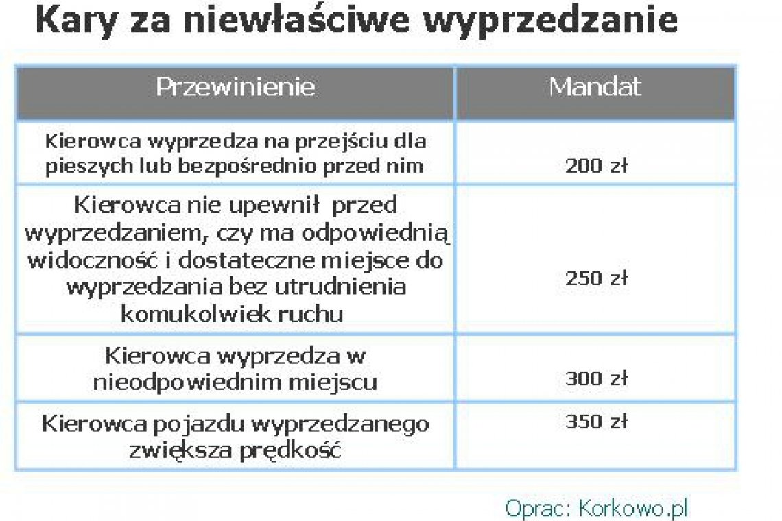 Wyprzedzanie to jeden z trudniejszych i bardziej wymagających manewrów. Wystarczy chwila nieuwagi, brawura lub zła ocena sytuacji i groźny wypadek gotowy. Nieumiejętne wyprzedzanie w najlepszym razie zakończy się mandatem. Czy wyprzedzanie naprawdę jest tak niebezpieczne? A może to kierowcy mało co o nim wiedzą? Kierowca, który ma zamiar przystąpić do wyprzedzania powinien wiedzieć, że prawo nakłada na niego szereg obowiązków – wszystko po to aby manewr nie zakończył się na przykład w rowie. – Ogólne przepisy dotyczące wyprzedzania zmotoryzowani mogą znaleźć w rozdziale 6 Kodeksu Drogowego – mówi Katarzyna Florkowska z serwisu Korkwo.pl. – Informacje zawarte w kodeksie przydadzą się nie tylko kursantom szkół jazdy, ale także bardziej doświadczonym kierowcom. Wiedzę z zakresu ruchu drogowego warto przecież odświeżać – radzi Florkowska. Pewność, która da oszczędnościO czym przede wszystkim powinni pamiętać zmotoryzowani? Na pewno o włączeniu myślenia i to jeszcze przed przystąpieniem do wyprzedzania. Kierowcy muszą upewnić się, że mają dobrą widoczność oraz dostateczną ilość miejsca na wykonanie manewru. Dodatkowo powinni sprawdzić czy pojazd, który porusza się za nim sam nie rozpoczął wyprzedzania. Z szczególną uwagę trzeba poświęcić również samochodowi, który chcemy wyprzedzać: należy upewnić się czy nie zasygnalizował zmiany pasa ruchu, kierunku jazdy lub wyprzedzania. Za złamanie tych powinności grozi mandat opiewający na sumę 250 zł. Pojazd, który przystępuje do tego manewru powinien bezwzględnie zachować też bezpieczną odległość od samochodu, którego wyprzedza, jak i innych uczestników ruchu. Z lewej strony, choć nie zawszeW świetle prawa pojazd należy wyprzedzać z lewej strony. Od tej reguły są jednak wyjątki. Pojazd szynowy można wyprzedzać tylko z prawej strony, chyba, że położenie torów uniemożliwia takie wyprzedzanie lub wyprzedzanie odbywa się na jezdni jednokierunkowej. Jeśli pojazd lub uczestnik ruchu sygnalizuje zamiar skrętu w lewo to także należy wyprzedzić go z jego prawej strony. Wyprzedzanie pojazdów z niewłaściwej strony może kosztować kierowcę 200 zł kary. Warto odnotować też, że osoba, która prowadzi pojazd wyprzedzany nie może zwiększać swojej prędkości – ani w trakcie trwania manewru ani tuż po jego zakończeniu. Za taki wybryk kierowcy grozi 350 zł. mandatu. Kierowcy powinni pamiętać, że generalnie nie dopuszcza się wyprzedzania przy dojeżdżaniu do wierzchołka wzniesienia, na zakręcie oznaczonym znakami ostrzegawczymi oraz na skrzyżowaniu, z wyjątkiem skrzyżowania o ruchu okrężnym lub na którym ruch jest kierowany. Wyprzedzanie w niedozwolonych miejscach zagrożone jest 300 złotowym mandatem – nie mówiąc już o kwestiach bezpieczeństwa.Źródło: Creandi