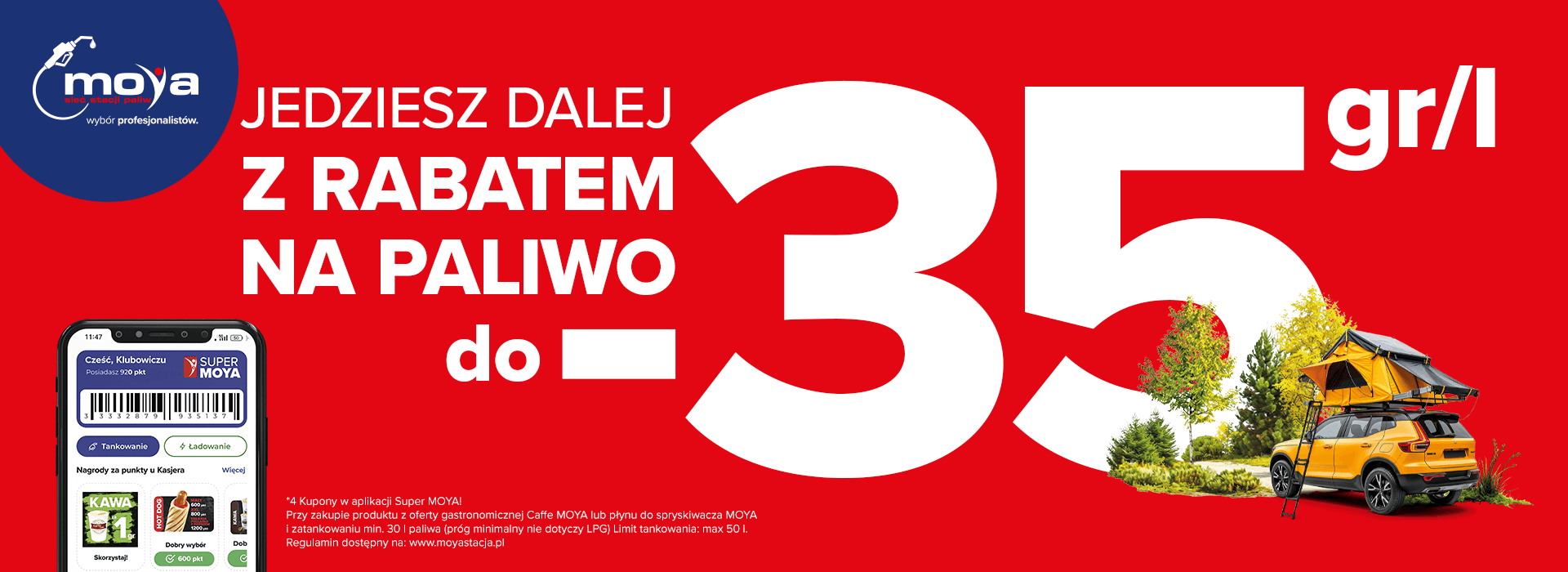 1 września na stacjach Moya wystartowała nowa promocja. Użytkownicy aplikacji Super Moya mogą tankować paliwo nawet 35 groszy taniej na litrze. Rabat naliczany jest przy zakupie minimum 30 litrów oraz kawy, przekąski z Caffe Moya lub płynu do spryskiwaczy.