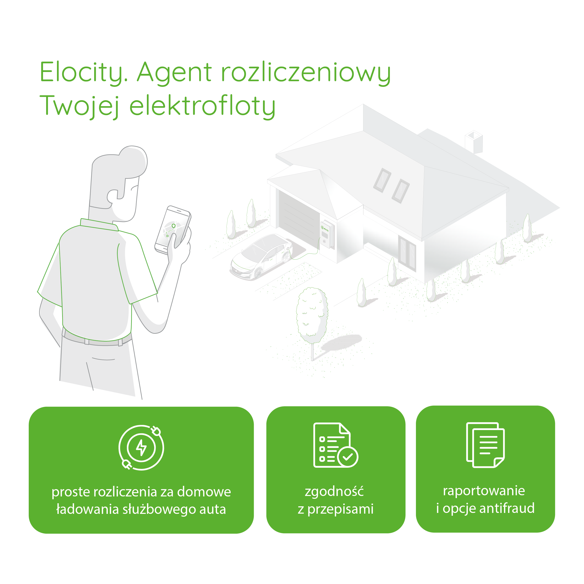 Wszystkie te aspekty ujęto w innowacyjnym modelu rozliczeń, w którym Elocity przyjmuje rolę agenta rozliczeniowego przydomowych ładowań. Spółka nie dolicza marży do kosztów zwrotu zużytej energii, pobierając jedynie stałą opłatę za obsługę transakcji. Właściciel floty otrzymuje co miesiąc jedną, zbiorczą notę obciążeniową, na łączną wartość wszystkich ładowań służbowych, które zostały zrealizowane w domach pracowników. W ramach usługi agenta rozliczeniowego, Elocity dokonuje zwrotów za zużycie energii na potrzeby służbowych ładowań dla poszczególnych pracowników, co znacząco upraszcza proces administracyjny i zapewnia zgodność z przepisami podatkowymi.
