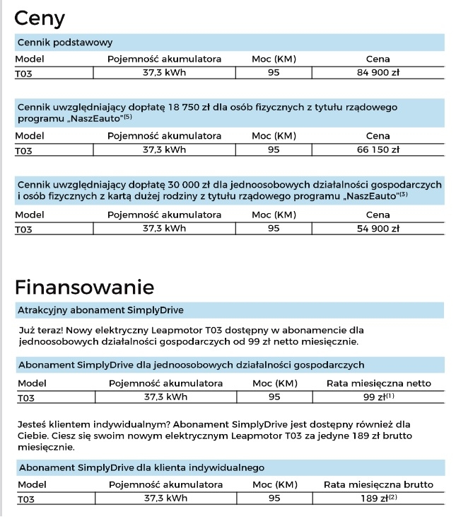 Wyciekł cennik Leapmotor. 99 zł miesięcznie?