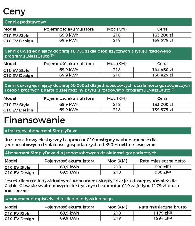 Na stronach niektórych dilerów grupy Stellantis można znaleźć cennik chińskich samochodów marki Leapmotor. Większy C10 oficjalnie kosztuje 163 200 zł, mniejszy T03 – 84 900 zł. Jest też oferta abonamentu. I to zaskakująca.
