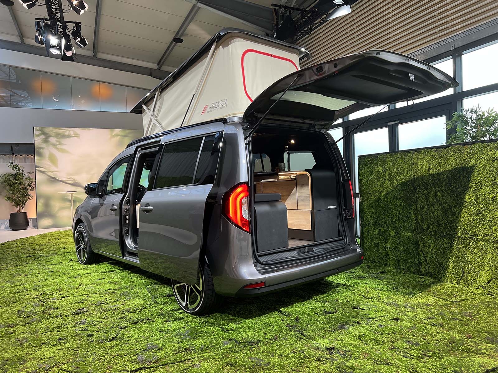 Kolejna rzucająca się w oczy funkcja Concept EQT Marco Polo: panel słoneczny na podnoszonym dachu. W połączeniu z dodatkowym, wyjmowanym akumulatorem pozwala to kamperowi być samowystarczalnym energetycznie przez określony czas i oszczędzać zasięg. Dodatkowa bateria podczas użytkowania jest przechowywana w szufladzie w siedzisku, ale można ją łatwo wyjąć i naładować np. z gniazdka we własnym domu, a nawet na kempingu. Inne atrakcje to markiza przeciwsłoneczna przymocowana z boku pojazdu oraz innowacyjny system zaciemniania tylnych szyb – można to zrobić za naciśnięciem jednego przycisku. Zasłony i rolety to już przeszłość w samochodzie koncepcyjnym.