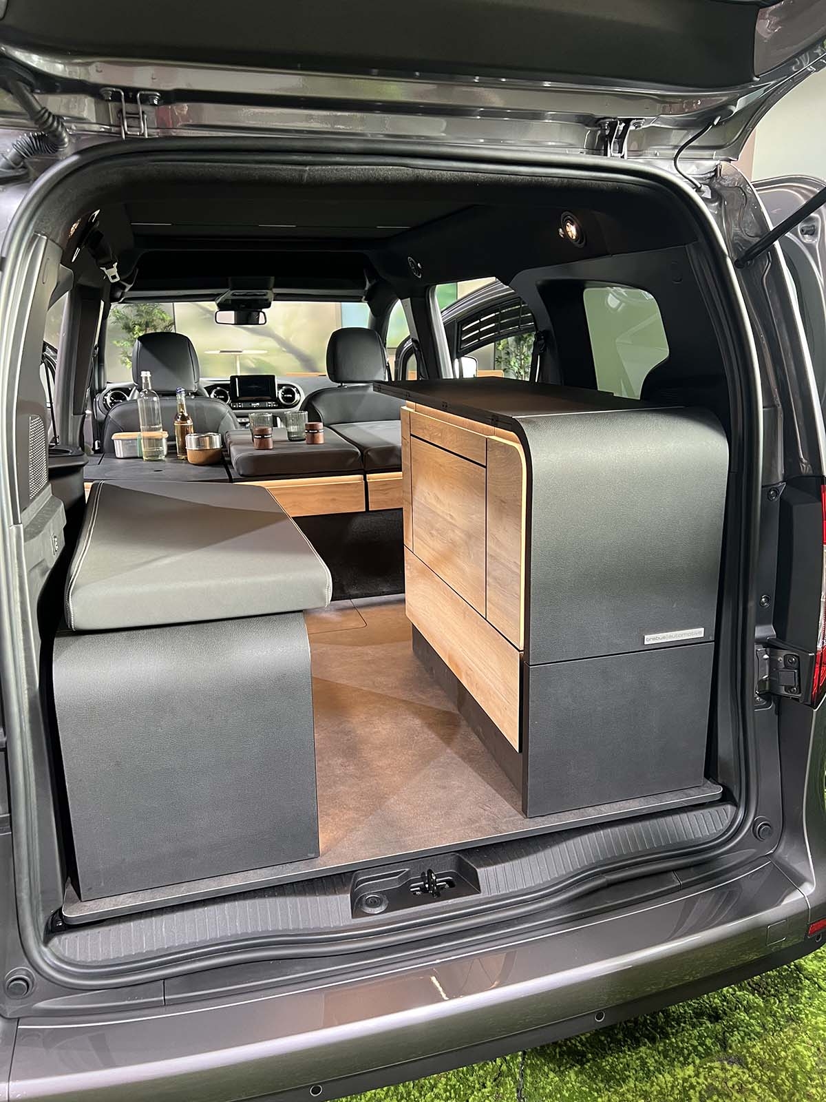 Wszystkie meble można w dwie osoby łatwo usunąć z wnętrza w mniej niż pięć minut. Oznacza to, że elektryczny mikrokamper może być w razie potrzeby używany również jako pojazd do codziennego użytku.