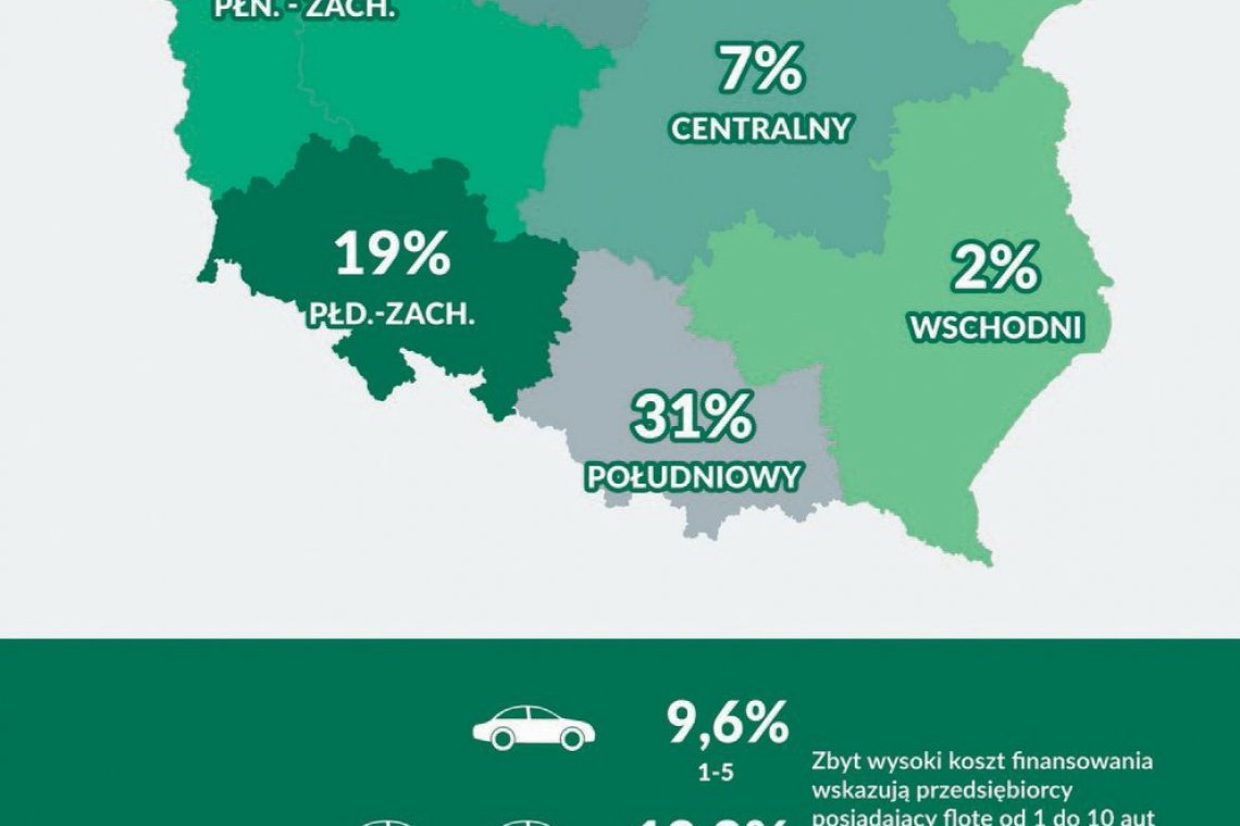 Mówiąc o jej atutach, aż 55 proc. przedsiębiorców wskazało na korzyści finansowe – pojazdy nie wchodzą w skład bilansu, a co za tym idzie, nie obciążają wyniku finansowego firmy. Ta cecha jest najważniejsza przede wszystkim dla firm ze wschodniej części Polski (43,8 proc.), natomiast najmniej przedsiębiorstw wskazujących na tę zaletę jest ulokowanych w regionie północno-zachodnim (13,5 proc.).