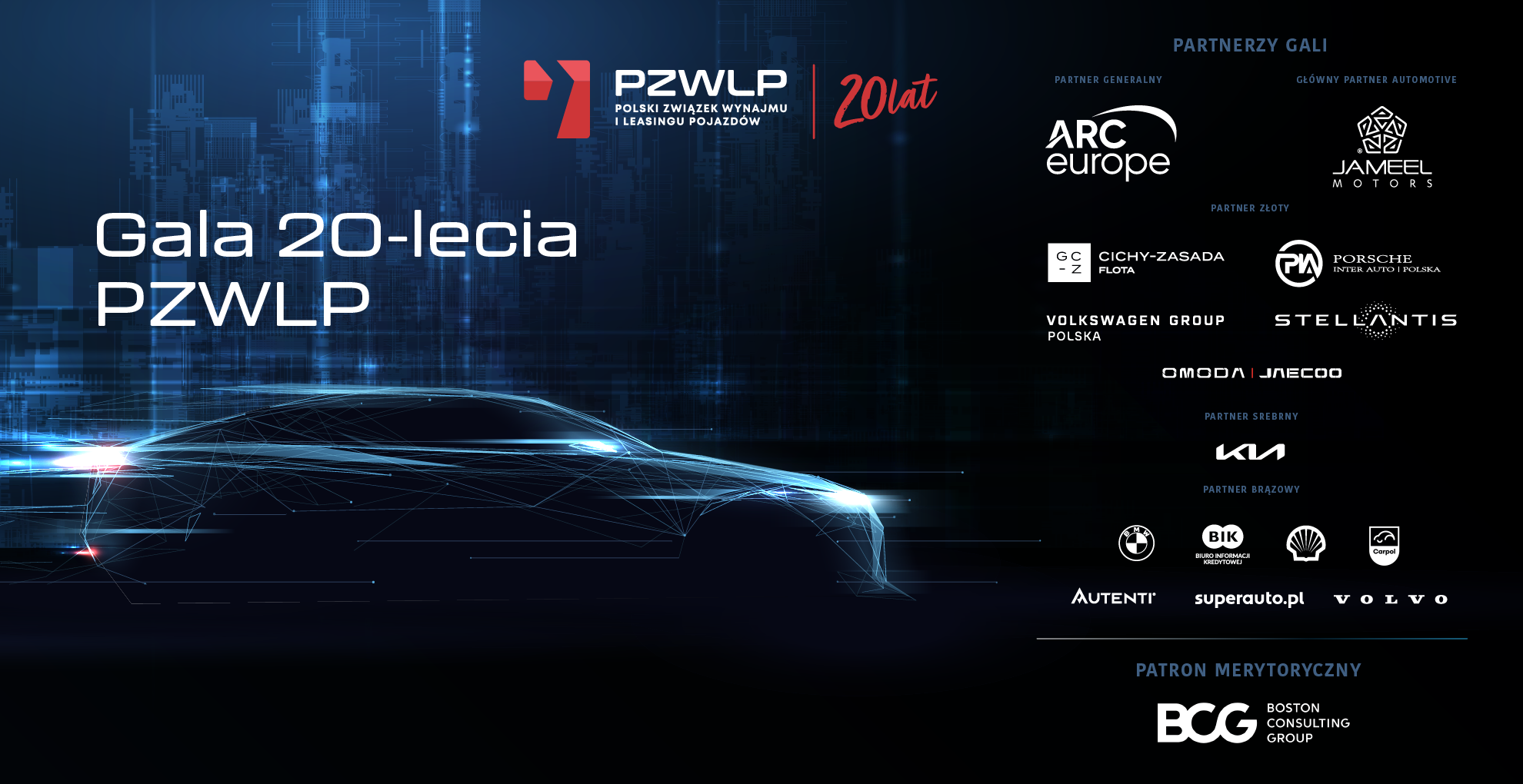 Partnerem Generalnym Gali 20-lecia PZWLP jest ARC Europe Polska. Głównym Partnerem Automotive wydarzenia jest firma Jameel Motors, importer marek GAC i Geely. Partnerami Złotymi Gali są: Grupa Cichy Zasada, Porsche Inter Auto Polska, Volkswagen Group Polska, Stellantis, Omoda Jaecoo. Partnerem Srebrnym została Kia Polska, a wśród Partnerów Brązowych znajdują się: BMW, BIK (Biuro Informacji Kredytowej), Shell, Autenti, Superauto.pl, Volvo i Carpol.