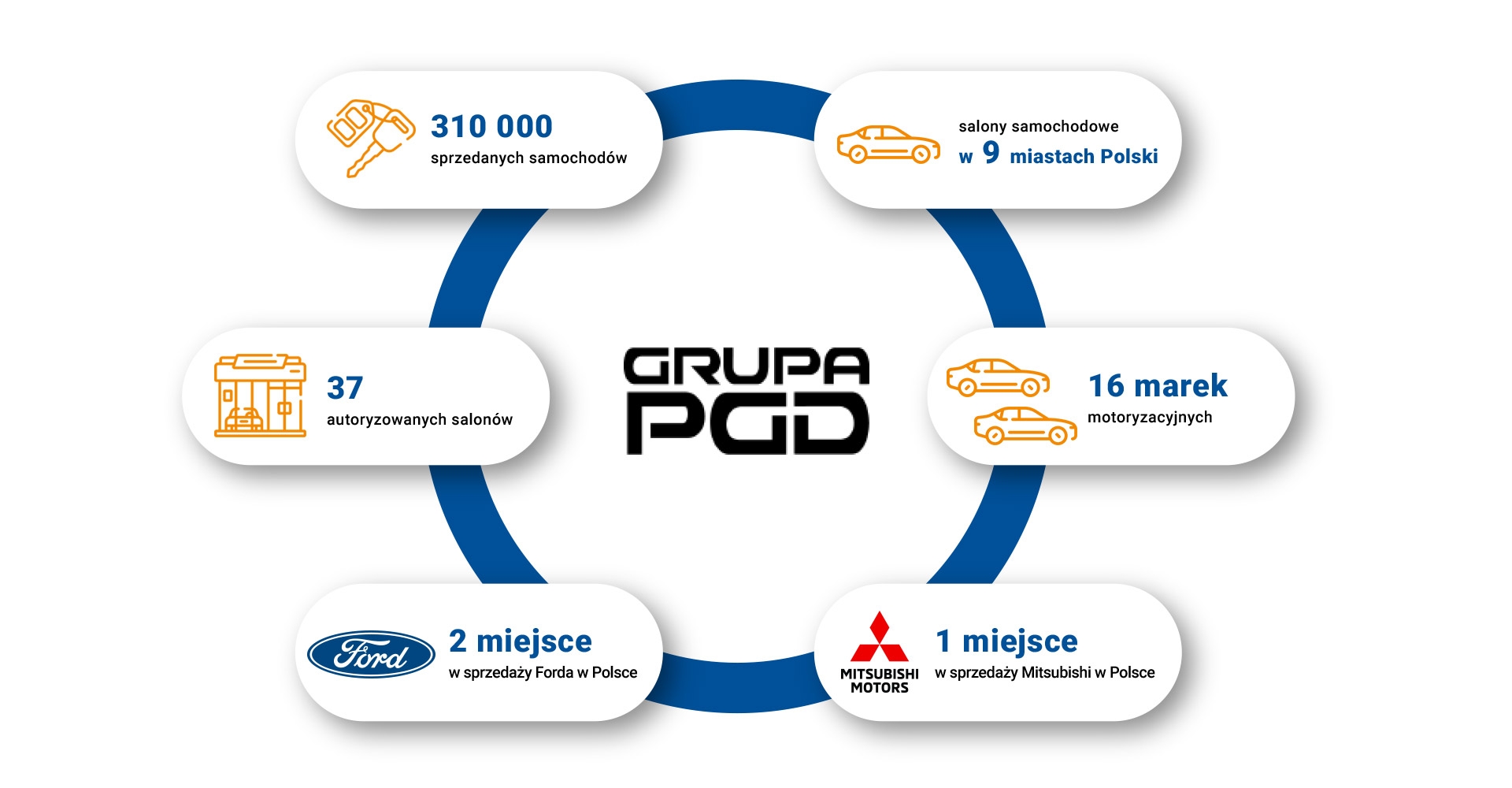 W sumie Grupa PGD reprezentuje szesnaście marek samochodowych w dziewięciu miastach w Polsce, salon Ford PGD Bardzka jest jej trzydziestą szóstą, a salon Mitsubishi będzie trzydziestą siódmą autoryzacją.