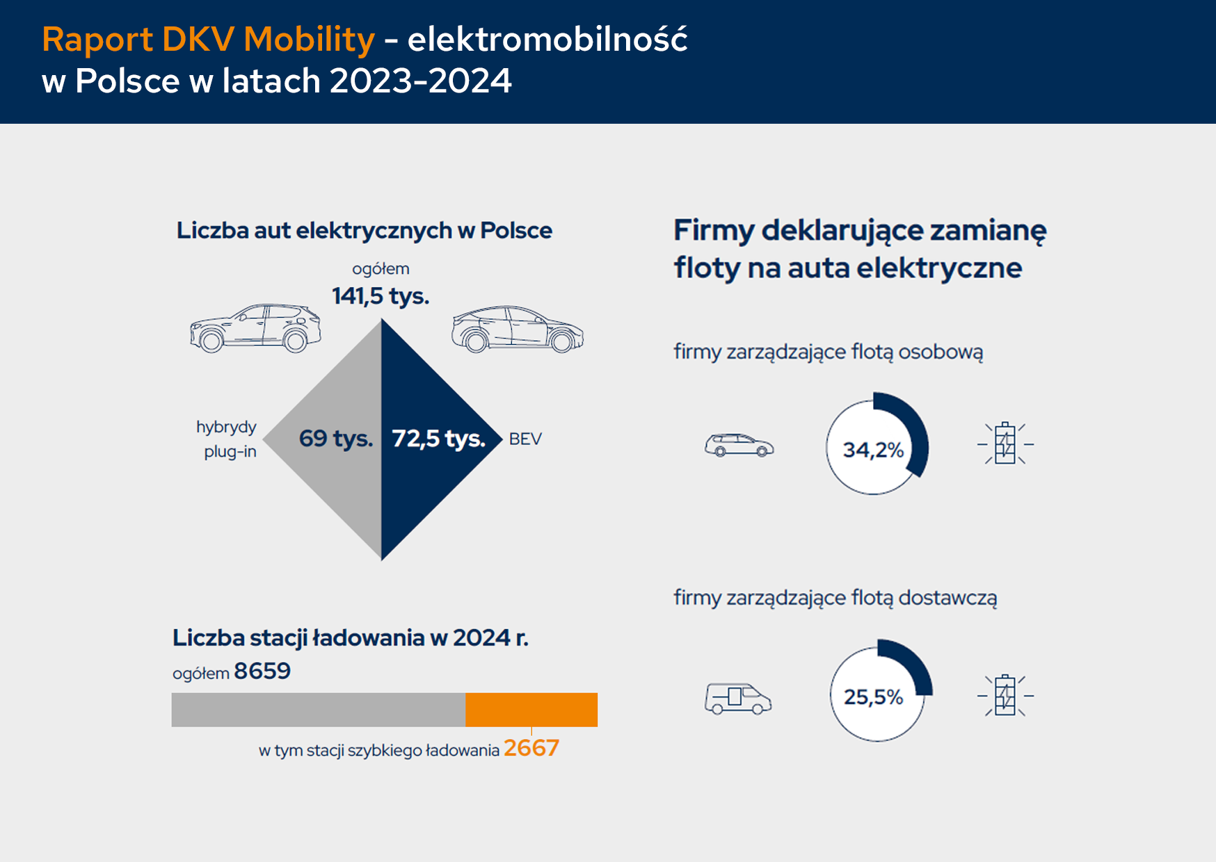 Elektromobilność w Polsce rozwija się głównie w segmencie flot osobowych i dostawczych. Wśród ankietowanych przez DKV Mobility Polska zarządców flot osobowych aż 34,2% z nich deklaruje gotowość do przejścia na pojazdy elektryczne, a wśród dostawczych – 25,5%.