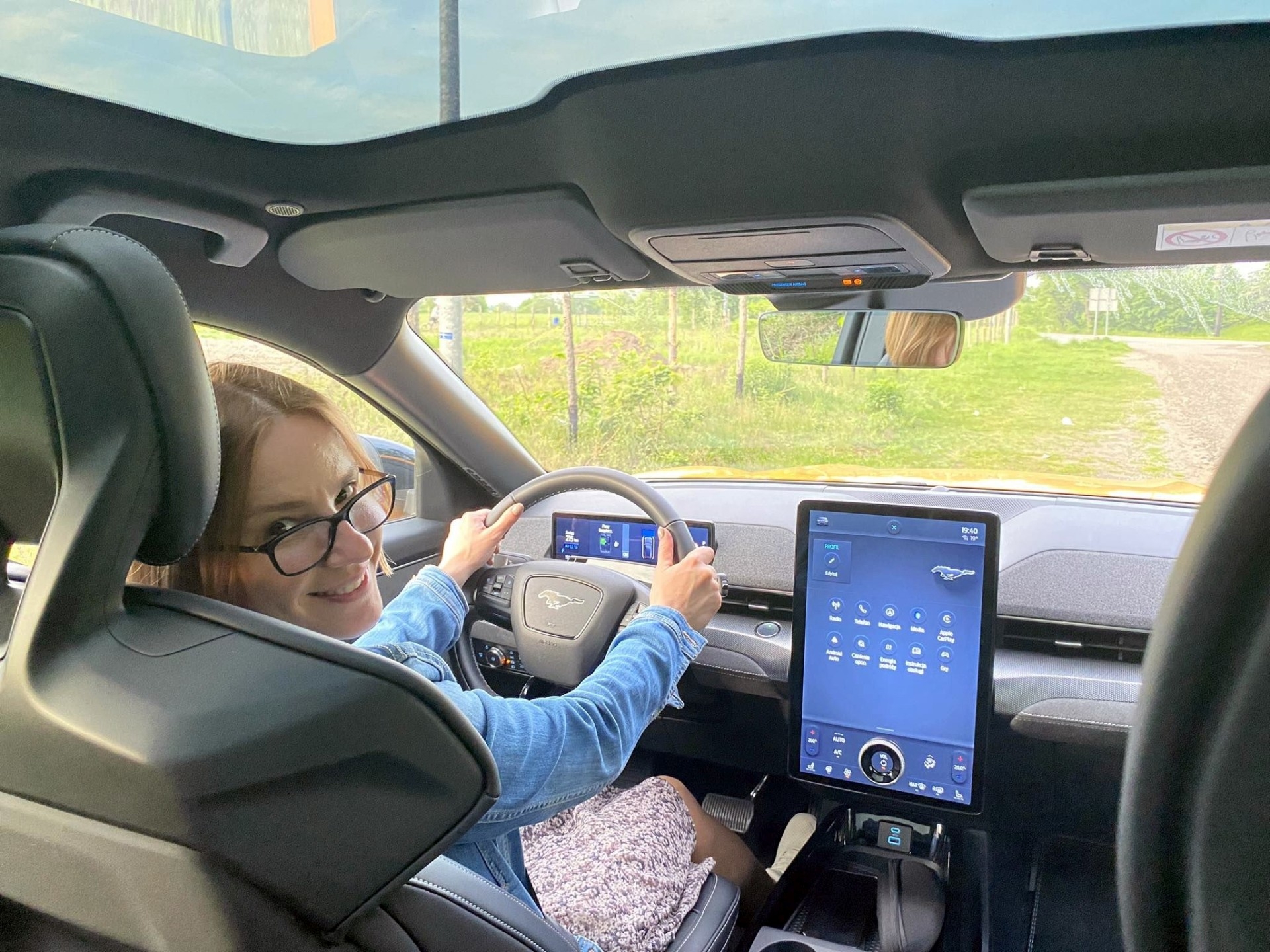 Uczestnicząc w teście długodystansowym, przejechałam Mustangiem około 800 km (autostrada, drogi krajowe, miasto), mogę śmiało powiedzieć, że jest to najciekawszy elektryczny samochód, jaki w ostatnim czasie wpadł mi w ręce. Prezentuje się imponująco, łącząc charakterystyczny sportowy styl Mustanga z elementami nowoczesnych SUV-ów. Smukła linia dachu z delikatnym spadkiem nadaje mu dynamiczny wygląd, a eleganckie reflektory LED i duża atrapa chłodnicy wyróżniają go na drodze, dodając pazura. Klasyczne detale, takie jak trójlistkowe tylne lampy, podkreślają związek z rodziną Mustanga. Zdecydowana kolorystyka pozwala kierowcom wyrazić swoją indywidualność.