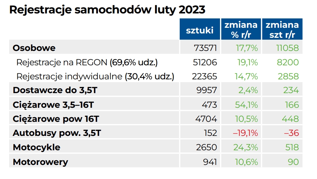 Rejestracje pojazdów styczeń 2023