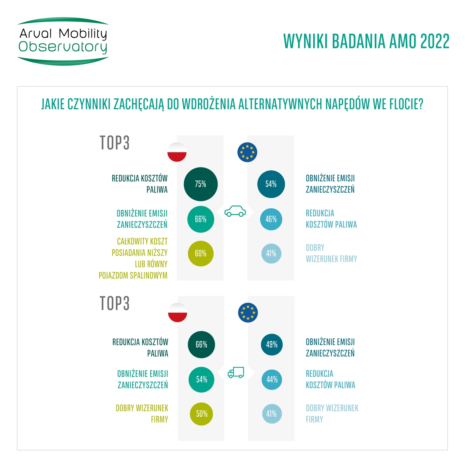 • Aż 3/4 firm w Polsce jako powód wprowadzenia elektryków do flot podaje chęć oszczędzania na kosztach paliwa.
