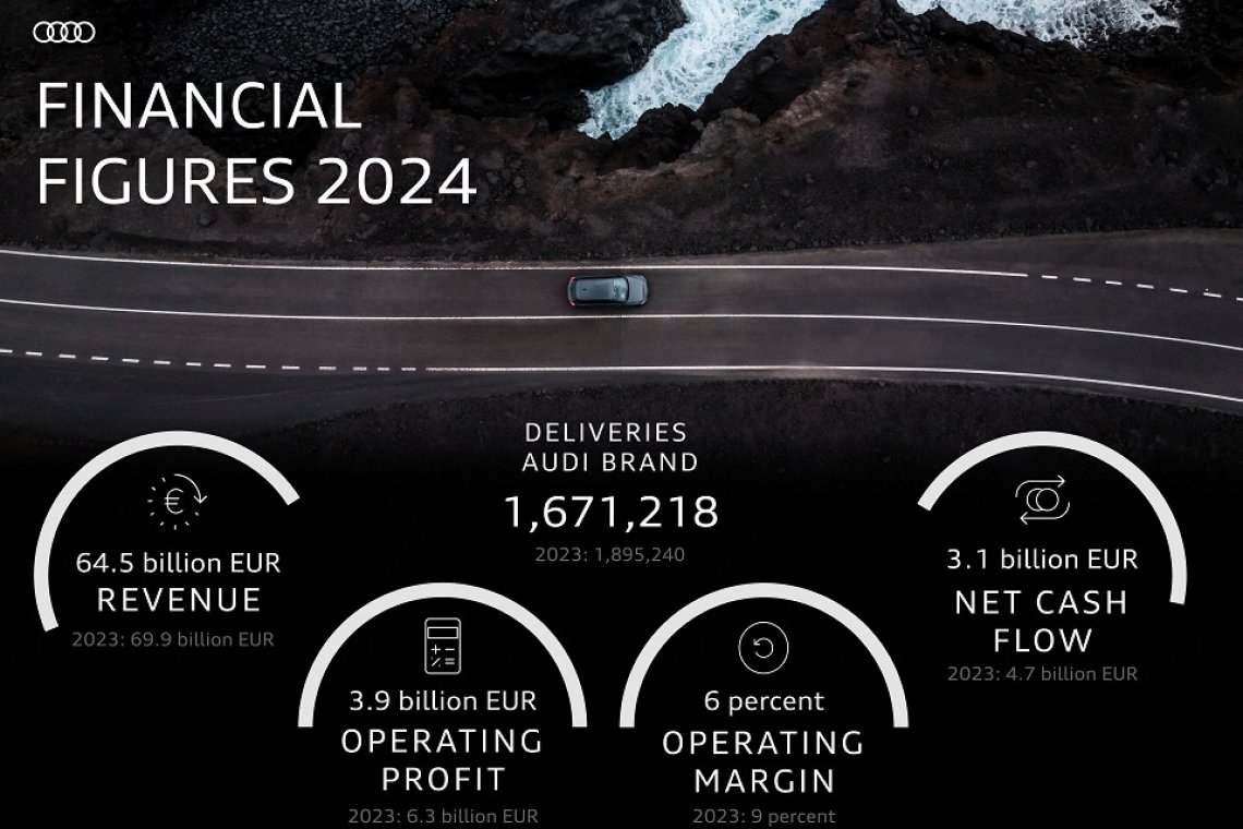 Łącznie Grupa Marek Progressive, w skład której wchodzą Audi, Bentley, Lamborghini i Ducati, sprzedała 1 692 548 (2023: 1 918 912) samochodów i 54 495 (2023: 58 224) motocykli. Liczba sprzedanych modeli marki Audi spadła o 11,8 procent do 1 671 218. W tej liczbie mieści się 164 480 samochodów w pełni elektrycznych (-7,8 procent).