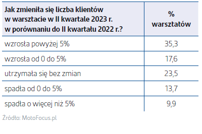Warsztaty nie narzekały na brak klientów w II kwartale tego roku, notują także większe przychody. Ponad połowa widzi rosnącą liczbę zleceń i klientów, natomiast 25% doświadczyło spadku. W ujęciu miesiąc do miesiąca daje się zauważyć niewielkie wzrosty. Większa liczba klientów w czerwcu może być jednak przede wszystkim sezonowa i związana z większą liczbą diagnostyki i napraw przed sezonem wakacyjno-urlopowym.