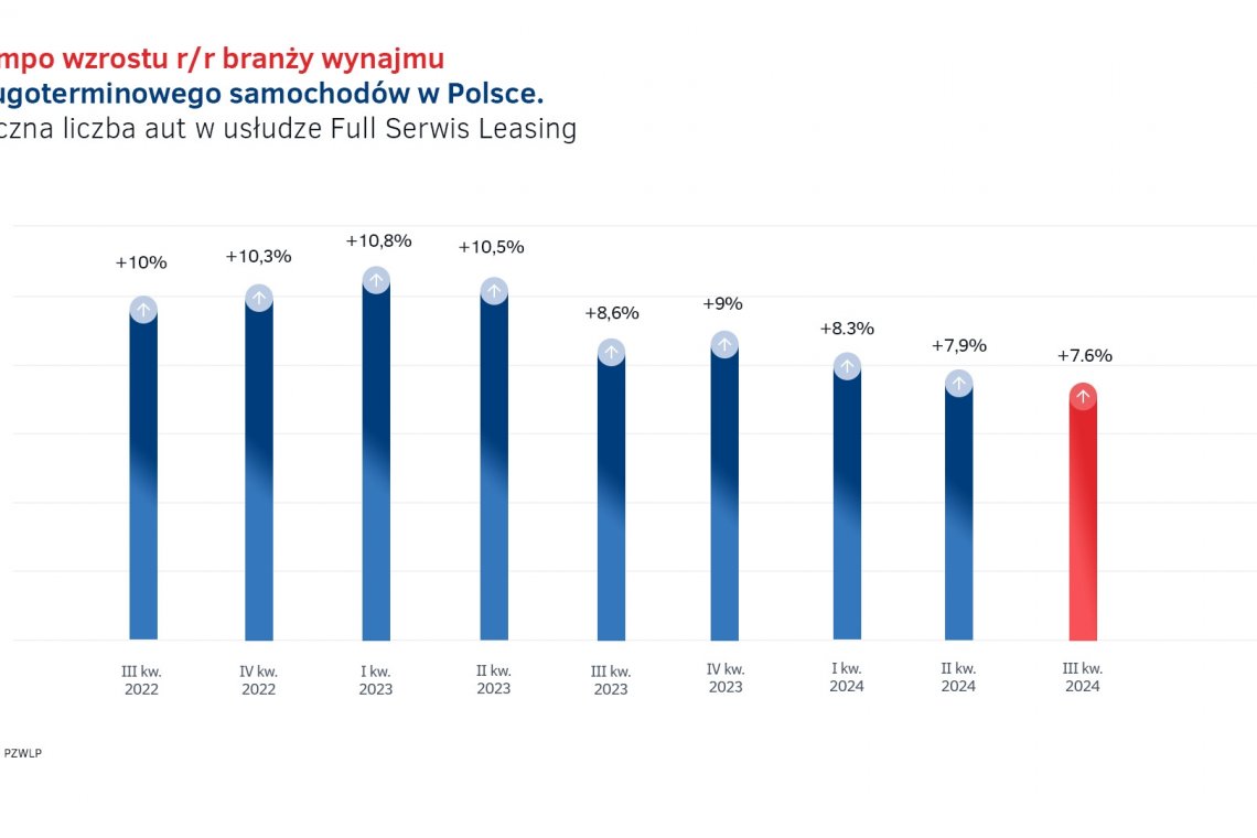 Zgodnie z danymi po trzecim kwartale opublikowanymi przez Polski Związek Wynajmu i Leasingu Pojazdów (PZWLP), na blisko 84 tys. nowych aut osobowych nabytych w tym czasie w Polsce przez firmy, ponad ¼ znalazła się w wynajmie długoterminowym. Rynek wynajmu długoterminowego aut na podstawie wielkości portfela firm zrzeszonych w PZWLP urósł w trzecim kwartale o 7,6% r/r. Wzrost odnotowała również branża Rent a Car (wypożyczalnie samochodów), która zgodnie z danymi organizacji wzrosła o 4,4% r/r.