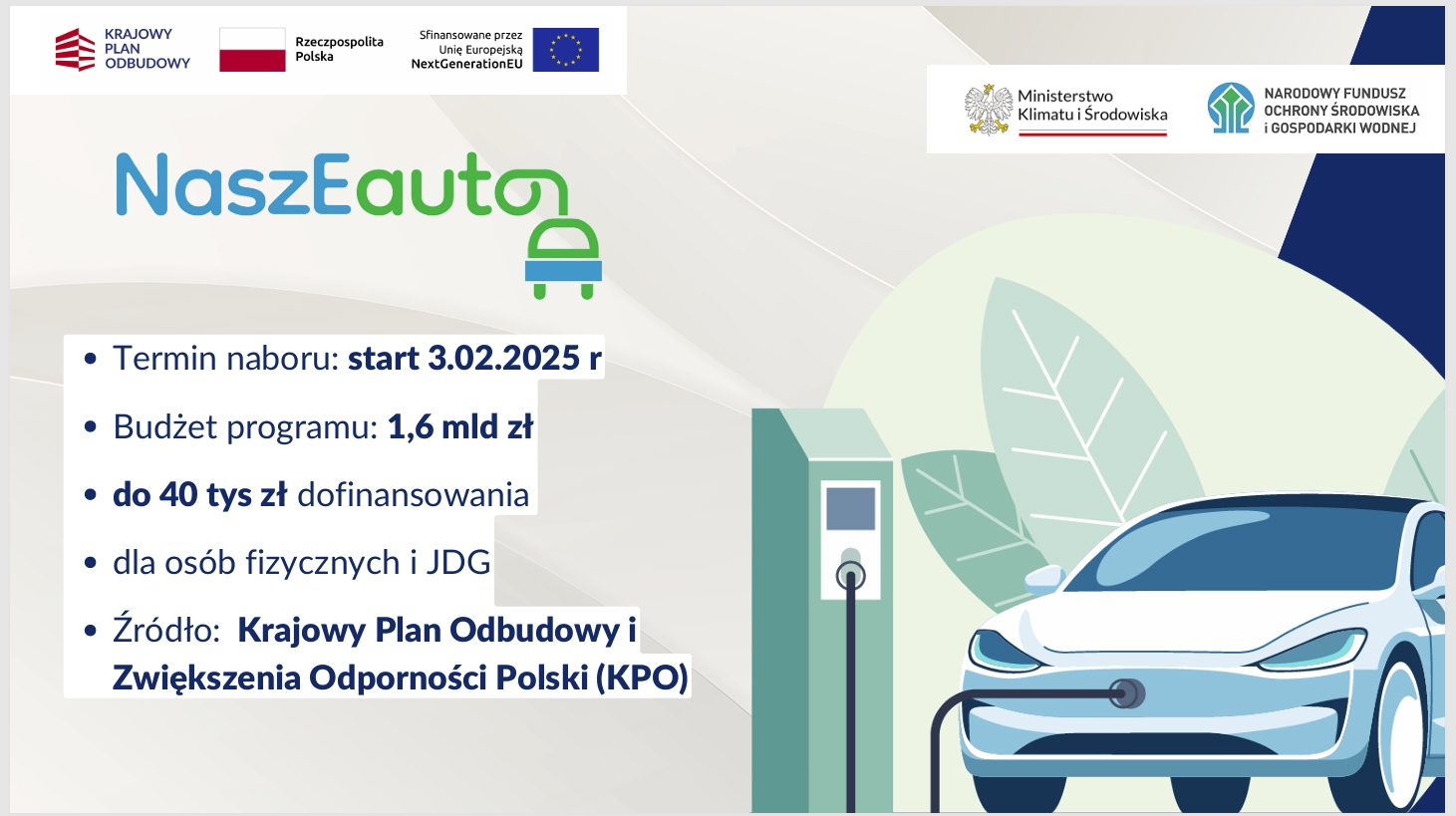Ponad 90% rejestracji pojazdów zeroemisyjnych to firmy. Już pod koniec sierpnia 2024 roku były wyraźne sygnały, że Mój elektryk nie ma się najlepiej, aż w końcu pod koniec roku dowiedzieliśmy się że będzie wygaszony i zastąpiony nowym programem z KPO. I pod koniec stycznia 2025 roku na konferencji prasowej dowiedzieliśmy się, że nowy program będzie się nazywał NaszEauto i będzie miał budżet 1,6 mld zł. Ale i też niestety, o czym było wiadomo wcześniej, NaszEauto nie jest kontynuacją tylko mocno ograniczonym programem nakierowany na wsparcie pojazdów kategorii M1 nabywanych przez osoby fizyczne i jednoosobowe działalności gospodarcze. Czyli z założenia program wycina najliczniejszych beneficjentów poprzedniego programu czyli firmy i nabywających pojazdy kategorii N1. Dodatkowo po dokładnej analizie opublikowanego chwilę później Opisu programu i Regulaminu, okazało się że z programu wyrzucono samochody wodorowe, co pozbawiło go waloru neutralności technologicznej. Można to nawet uznać, za niezgodność z KPO. Na wydatkowanie założonego budżetu mamy czas do połowy 2026 roku, co przy maksymalnej kwocie wsparcia 40 tys zł, oznacza około 40 tys samochodów. Czy uda się wykorzystać alokację? Patrząc na dane historyczne może być z tym trudno przy takiej konstrukcji programu.