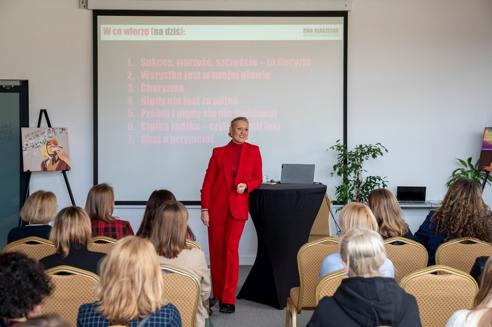 Temat przewodni spotkania „Women Empowerment” wybrzmiewał na każdym kroku, począwszy od zdefiniowania świata biznesu i coraz większej roli w nim kobiet, aż po budowanie własnej wartości i świadomości. Inspirujące stały się spostrzeżenia Ewy Błaszczak, mentorki liderów i strategicznej  konsultantki  biznesowej, która podzieliła się ze słuchaczkami tym, jak mądrze rozwijać się, budować własną markę  oraz wyróżniać się w świecie biznesu, nie zapominając o własnych talentach i indywidualnej charyzmie.
