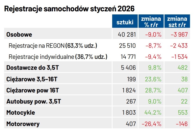 Rejestracje pojazdów styczeń 2026
