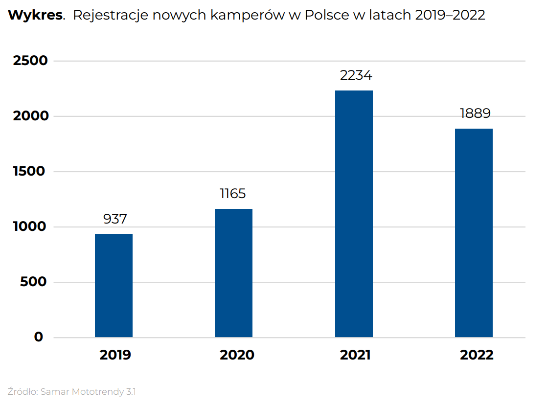 Wynik rejestracji nowych kamperów w 2020 roku był już znacząco większy niż rok wcześniej, ale nie był jeszcze spektakularny. Wpłynęły na to ograniczenia związane z pandemią, zmniejszone możliwości wytwórcze producentów oraz ogromna liczba zamówień na kampery. Lawinowy wzrost zainteresowania sprawił, że okres oczekiwania na taki pojazd wydłużył się zwykle do roku, półtora. Zatem gros rejestracji w 2021 roku jest wynikiem zamówień z roku wcześniejszego. Produkcją zainteresowało się wiele podmiotów specjalizujących się w innych rodzajach pojazdów. Przykładem jest podwarszawska firma Mercus znana z produkcji zabudów autobusowych i dystrybucji autobusów różnych marek. Po rekordowych latach 2021–2022 na rynku kamperów i przyczep kempingowych przyszedł czas rynkowego spowolnienia. Obecnie można znaleźć oferty sprzedaży nowych kamperów od ręki. Nie oznacza to, że kierowcy nagle przestali się interesować kamperami i gremialnie ruszyli na lotnicze wyjazdy zagraniczne. Obecnie i tak liczba rejestracji nowych i używanych kamperów jest prawie dwukrotnie większa niż przed 2020 rokiem.