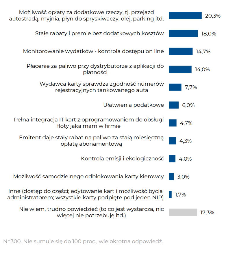 Wykres 7. Jakie funkcje - poza płatnościami za paliwo – są konieczne przy kartach paliw?