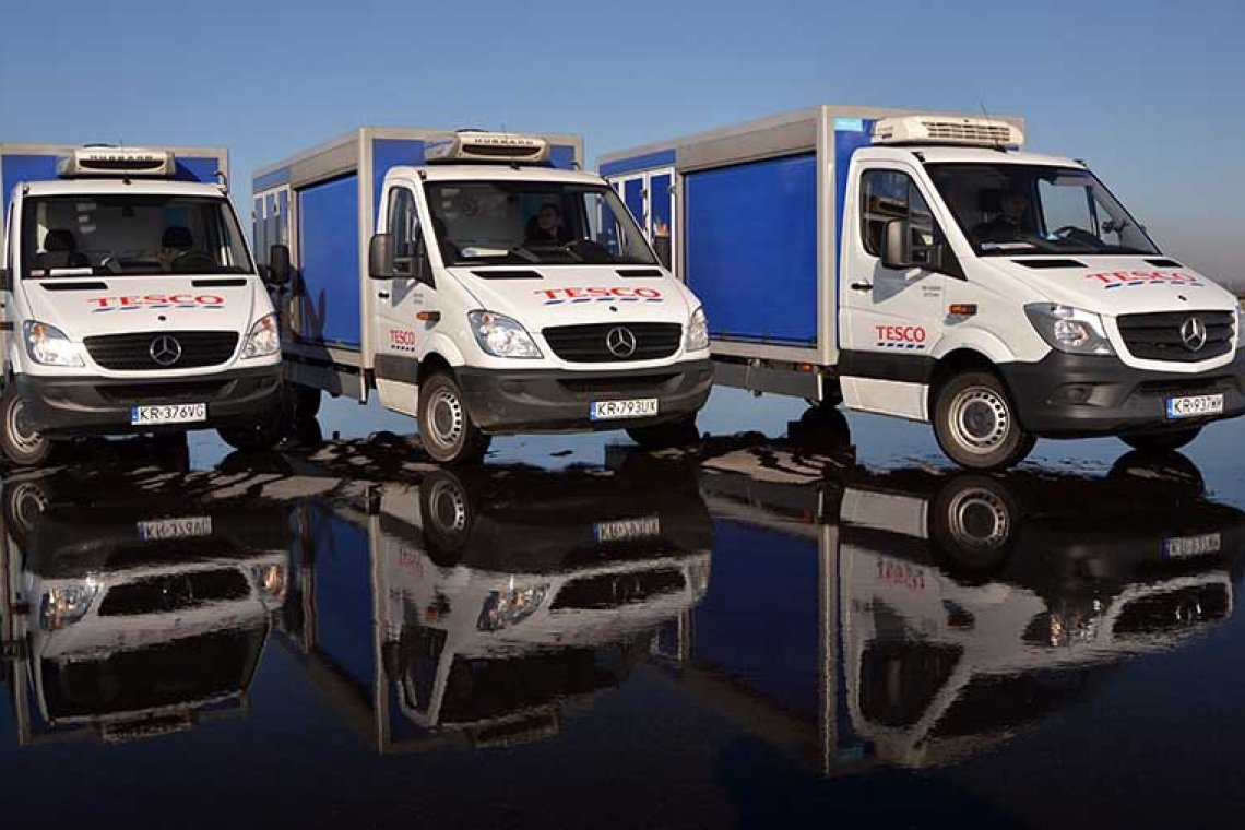 DSC 0388Tesco od dwóch lat rozwija w Polsce usługę Dotcom, czyli sprzedaży online i następnej dostawy produktów do domów klientów. Aby należycie ją wykonać brytyjska firma potrzebuje coraz bardziej rozbudowanej floty pojazdów dostawczych zbudowanych ściśle według jej wskazówek. Wiodącym dostawcą samochodów użytkowych dla Tesco, i to w całej Europie, od zeszłego roku stał się Mercedes. DSC 0428W zeszłym roku sieć hipermarketów Tesco zamówiła w Polsce 114 samochodów dostawczych Mercedes-Benz Sprinter. Pojazdy zostały zabudowane specjalnie pod przewóz towarów w Czechach i na Słowacji. Dostawcą specjalistycznych nadwozi izotermicznych i chłodniczych była firma Solomon a klimatyzatorów i agregatów chłodniczych - Hubbard.Dla Tesco warunkiem koniecznym w przetargu było posiadanie przez samochody automatycznej skrzyni biegów. Mercedes oprócz pojazdów zapewnił w ramach kontraktu kompleksową obsługę posprzedażną. W przypadku zamówionych Sprinterów serwisowanie odbywa się na kosztach rzeczywistych. Tesco wnosi jedynie symboliczne opłaty za obsługę i call center. Zamówione samochody są objęte czteroletnią gwarancją z limitem przebiegu 240 tys. km. DSC 0327Współpraca między Mercedesem i Tesco odbywa się również na płaszczyźnie szkoleń. Jedno z nich miało miejsce w dn. 4-5.02 br. w na torze doskonalenia jazdy Sobiesław Zasada Centrum w Bednarach pod Poznaniem. We wspólnie zorganizowanym szkoleniu wzięli udział team-leaderzy oraz kierowcy firmowi Tesco. W ramach ćwiczeń praktycznych przedstawiane były m.in. sposoby zachowania się pojazdów na drodze w szczególnych warunkach - przy okazji hamowania, ruszania pod górę czy jazdy slalomem. DSC 0379Polska flota Tesco, oprócz Mercedesów Sprinter (w tym ok. 50 szt. w wersji po faceliftingu), składa się z kilkudziesięciu dostawczaków IVECO Daily oraz ok. 500 aut osobowych Opel Astra i BMW. PD