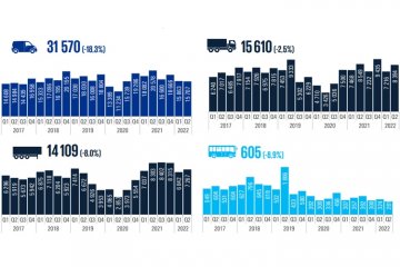 W pierwszym półroczu 2022 roku zarejestrowano w Polsce 212,4 tys. nowych samochodów osobowych – o 12,3% mniej w porównaniu z analogicznym okresem ubiegłego roku. Gorsze wyniki sprzedaży zanotowały również segmenty samochodów dostawczych (-18,3%), samochodów ciężarowych (-2,5%), przyczep i naczep (-8%) oraz autobusów (-8,9%). Wzrosła natomiast sprzedaż samochodów osobowych z napędami alternatywnymi – w ciągu 6-ciu miesięcy 2022 roku zarejestrowano blisko 87 tys. tego typu pojazdów, o 10,3% więcej niż w analogicznym okresie 2021 roku.