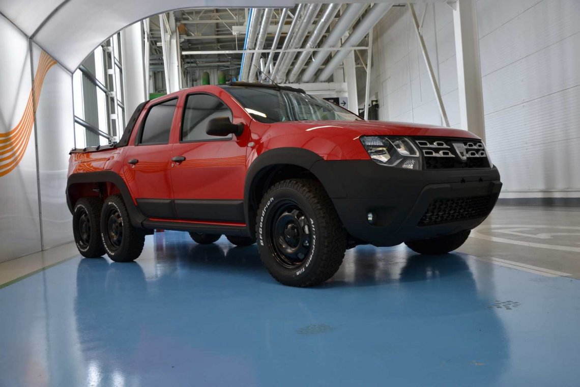 Dacia DustruckPamiętacie ekstremalną terenówkę Mercedes G63 AMG z napędem 6x6? Zapewne, choć niewielu ma szansę zobaczyć te monstrum na ulicy z racji kosmicznych cen (ok. 400 tys. euro) oraz absolutnego braku poręczności w poruszaniu się w mieście. Podobny, ale przynajmniej dziesięć razy tańszy pojazd przygotowali konstruktorzy Dacii. Mogliśmy go oficjalnie zobaczyć podczas Dacia Tour odbywającego się w dniach 21-23 maja w Rumunii. Dacia Dustruck2Pikap Dustruck powstał w oparciu o podwozie klasycznego SUV-a Duster, w którym dołożono z tyłu kolejną oś. Tak powstały pojazd 6x4 może się okazać niekiedy nawet lepszym pomysłem na bezdroża (dzięki niskiej masie) niż G63 AMG. Tył prototypowego pojazdu pochodzi z modelu Logan Pick-up a na pakę załadujemy towary o masie nawet jednej tony. Dacia nie przewiduje jednak wprowadzenia prototypu Dustruck do produkcji. Dacia Dustruck3 Dacia Dustruck4 Dacia Dustruck5PD