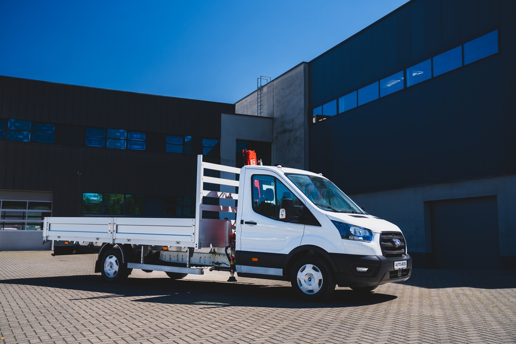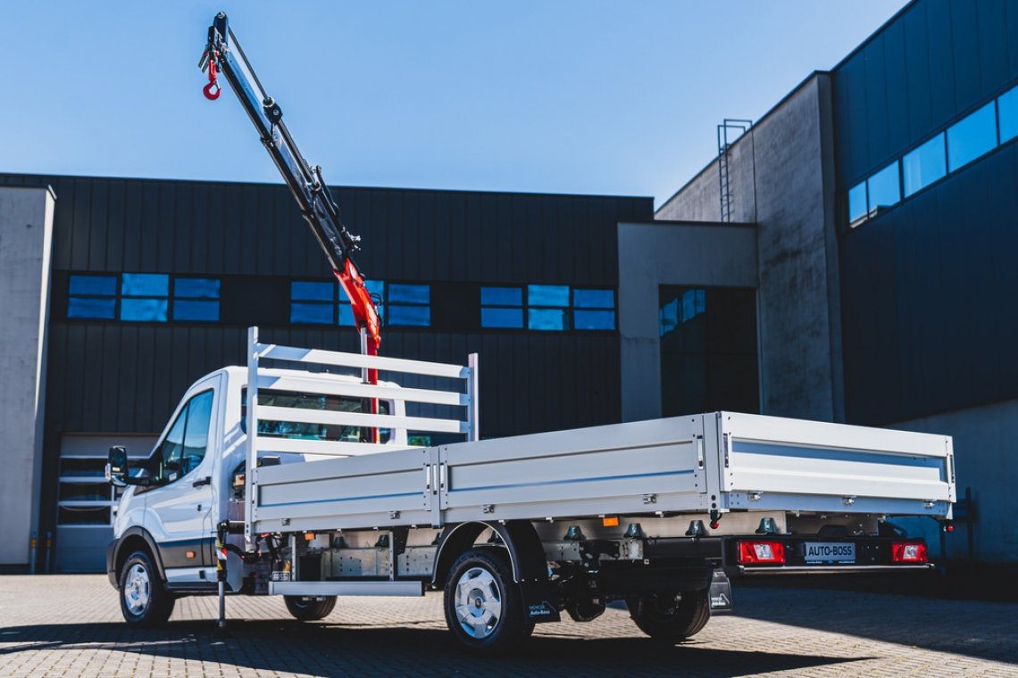 Hydrauliczny dźwig samochodowy to uniwersalne narzędzie nie tylko w transporcie ciężkim. Teraz taka „zabudowa” dostępna jest na Fordzie Transicie zarówno z napędem spalinowym jak i elektrycznym.