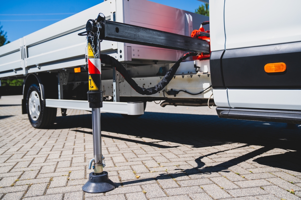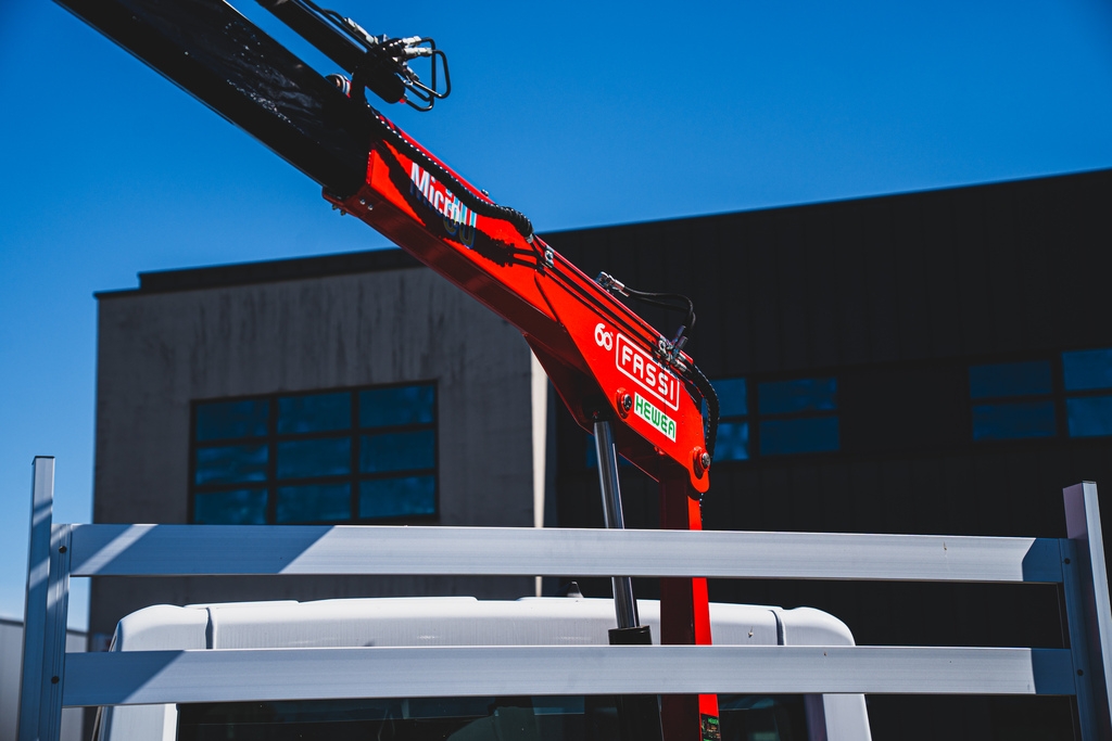 Za kabiną samochodu został zamontowany żuraw hydrauliczny włoskiego producenta Fassi z podporami stabilizującymi. Posiada on trzy wysuwy hydrauliczne z opcją dołożenia dodatkowych. Całość wykonana ze szwedzkiej, certyfikowanej stali STRENX – charakteryzuje się ona bardzo dużą elastycznością zwiększającą wytrzymałość strukturalną elementów konstrukcji.