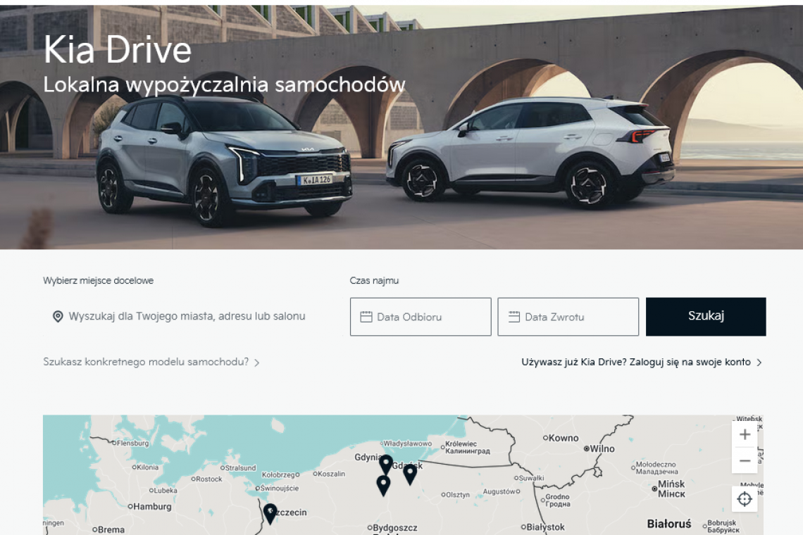 W Polsce usługa Kia Drive również działa i jest dostępna u wybranych dilerów (szczegóły TUTAJ). Takiej usługi, jak do tej pory, nie ma w ofercie żadna inna marka w Polsce. Usługa Kia Drive to, najprościej ujmując, wypożyczalnia samochodów, którą prowadzą wybrani dealerzy. Samochody dostępne w programie mają pełne ubezpieczenie oraz są zatankowane, po przeglądzie i przygotowane do drogi. Do wyboru są Stonic, Ceed, Ceeda kombi, Sportage, Niro HEV, XCeed PHEV oraz modele elektryczne Niro EV i EV6.