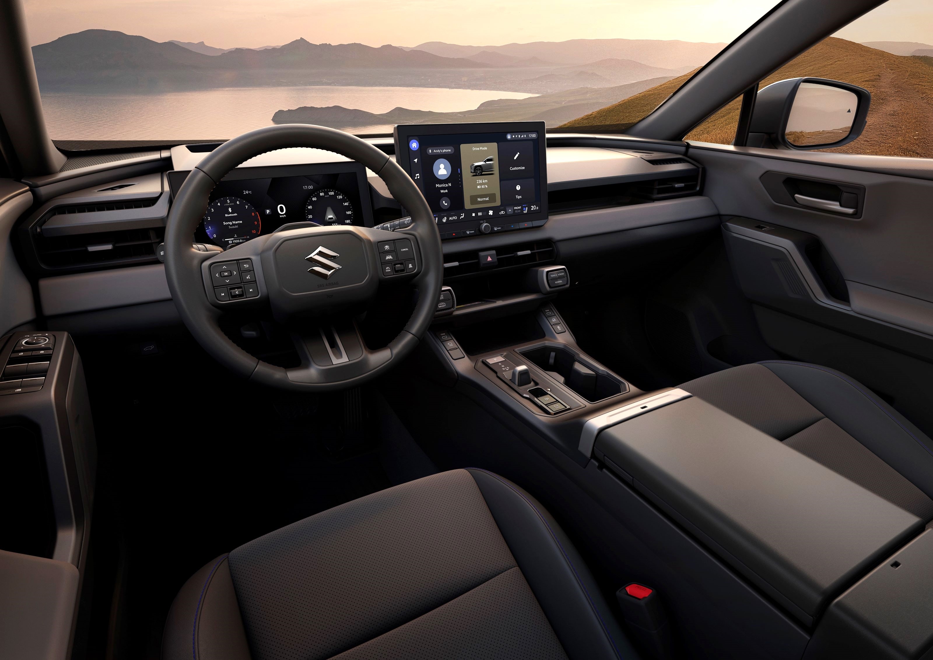 Jak pisze Suzuki w swoim materiale, kabina nowego Acrossa została zaprojektowana wedle filozofii „architektury wyspowej”. Co to znaczy? Kluczowe elementy (wyświetlacz, system audio, dźwignia zmiany biegów) zostały odpowiednio pogrupowane. Dzięki temu tworzą harmonijną wizualnie całość.