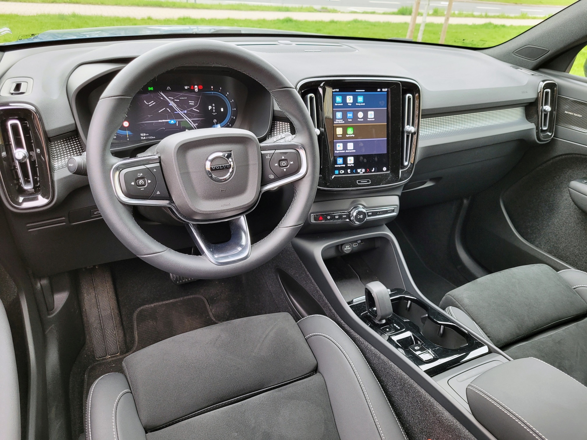 We wnętrzu XC40 miejsca jest sporo, biorąc pod uwagę kompaktowe rozmiary zewnętrzne. Jest tu schludnie i elegancko. Materiały wykończeniowe i ich kolorystykę dobrano ze smakiem. Deskę rozdzielczą okrojono do minimum z przycisków i pokręteł. Na środkowej konsoli dominuje ustawiony pionowo 9-calowy wyświetlacz dotykowy systemu multimedialnego. To poprzez niego możemy nie tylko śledzić wskazówki nawigacji, ale też sterować systemem audio, klimatyzacją czy ustawieniami jazdy samochodu. Za kierownicą zamontowano 12,3-calowy wyświetlacz zegarów. Niezwykle cenną funkcjonalnością samochodu są wbudowane Mapy Google, Asystent Google i sklep Google Play. W praktyce nie musimy więc mieć ze sobą smartfona, by korzystać w pełni z możliwości cyfrowego świata na pokładzie. Dotyczy to również strumieniowego słuchania naszej ulubionej muzyki. Co więcej, korzystanie z tych usług oraz danych mobilnych jest bezpłatne przez cztery lata od zakupu. Nie tylko aspekty świata cyfrowego dopieścili inżynierowie Volvo. Samochód cechuje się również przytulnością wnętrza oraz wygodą foteli, dzięki którym kilkusetkilometrowa podróż będzie przyjemnością. Smartfon może nam się przydać, gdyż przy odpowiedniej konfiguracji samochód możemy otwierać przy jego użyciu, bez konieczności posiadania ze sobą kluczyka. Wygodną funkcjonalnością modelu XC40 jest możliwość zdalnego dostępu do samochodu zaufanym osobom poprzez aplikację w smartfonie. Aplikacja pozwala też zlokalizować pojazd, zdalnie włączyć silnik i ogrzewanie, sprawdzić zasięg i inne parametry pojazdu.