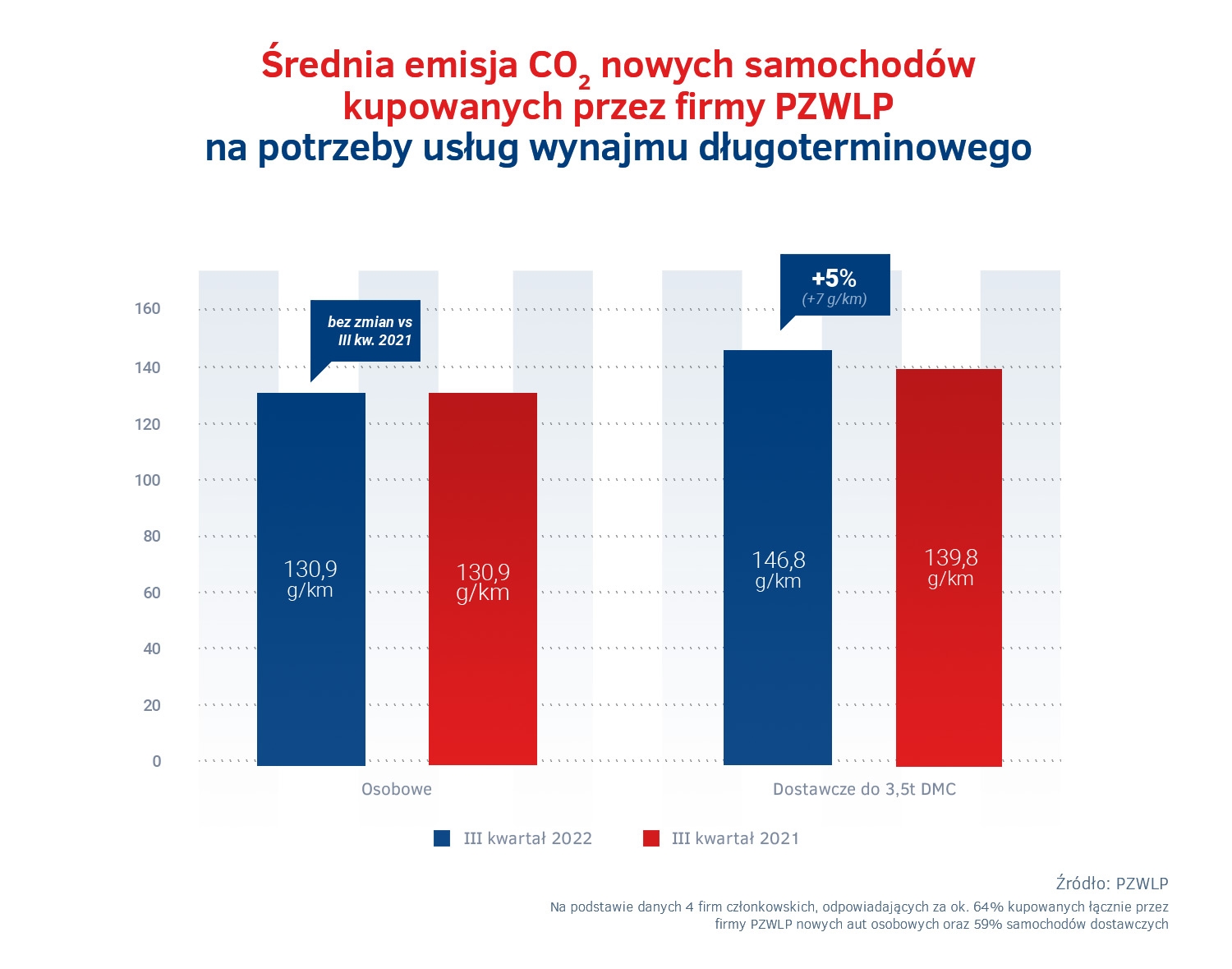 Średnia emisja dwutlenku węgla nowych samochodów osobowych zakupionych przez branżę wynajmu długoterminowego w trzecim kwartale 2022 roku była identyczna jak w analogicznym czasie rok wcześniej i wyniosła 130,9 g/km. Jeśli zaś chodzi o auta dostawcze, to średnia emisja w ich przypadku wyniosła 146,8 g/km i była wyższa o 5% i 7 g/km w stosunku do stanu w porównywalnym okresie roku 2021.