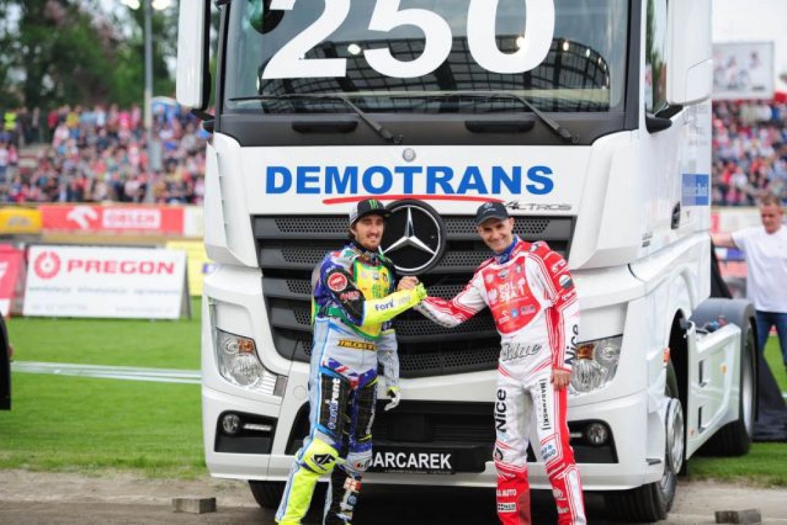 Maj rozpoczął się w Ostrowie Wielkopolskim od wielkich emocji. Kibice mogli świętować zwycięstwo w polsko-australijskim meczu żużlowym. Świętował również partner imprezy – Mercedes-Benz, uroczyście przekazując firmie Demotrans 250-tą ciężarówkę spod znaku Gwiazdy. 1 maja to historyczna data dla polskiego żużlu. Tego dnia po raz pierwszy w historii zawodów żużlowych, starły się reprezentacje Polski i Australii – należące do ścisłej światowej czołówki. Drużyny obu krajów wjechały na tor na specjalnie do tego celu zabudowanych platformach na ciągnikach Actros, prowadzone przez Klasę G63 AMG 6x6. Było to preludium uroczystości oficjalnego przekazania firmie Demotrans odpowiednio 248-ego, 249-ego i 250-ego samochodu ciężarowego Mercedes-Benz.Pojazd z numerem 250. Przekazali przedstawiciele Mercedes-Benz Polska oraz Auto Partner J.A. Garcarek w asyście samych mistrzów świata na żużlu - Tomasza Golloba (Mistrz Świata 2010) i Australijczyka Chrisa Holdera (Mistrz Świata 2012). Temu pierwszemu szczęśliwa Gwiazda przyniosła pomyślność – mecz odbywający się po uroczystości wygrali nasi rodacy.Firma Demotrans z Oleśnicy to wieloletni klient kaliskiego dealera Mercedes-Benz firmy Auto Partner J. i A. Garcarek. Actrosy od dawna jeżdżą we flocie tego przewoźnika – teraz przyszedł czas na jej stopniowe odświeżenie. Wydanie kolejnej partii pojazdów dało okazję do odświętnej oprawy – jednym z odbieranych samochodów była 250-ta ciężarówka Mercedes-Benz (w tym 67-ma w tym roku).Nowe Actrosy firma Demotrans zakupiła dzięki finansowaniu Mercedes-Benz Leasing, i są wyposażone w kabiny StreamSpace z płaską podłogą i dwiema leżankami. Z punktu widzenia strategii marketingowej Auto Partner J.A. Garcarek wybór wydarzenia sportowego jako oprawy do wydania pojazdów firmie Demotrans nie był przypadkowy – na trybunach zawodników dopingowało ok. 10 tysięcy kibiców, w tym wielu przedsiębiorców z branż transportowej i budowlanej, dla których żużel jest jednym z ulubionych sportów.Źródło: Mercedes-Benz