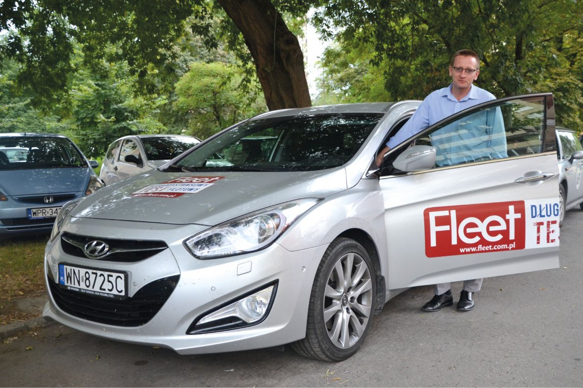 Przedmiotem testu był Hyundai i40, 1,7 CRDi, w wersji kombi. Auto było wyposażone w silnik wysokoprężny o pojemności 1685 ccm w najbogatszej wersji wyposażeniowej z manualną skrzynią biegów. Paweł Turzynieckikierownik floty samochodowej firmy usługowejSamochód miałem okazję testować w warunkach tropikalnych, które u nas przez pewien czas panowały (w dniu odbioru auta na zewnątrz było 38 stopni), oraz w deszczowe dni.Po krótkim wprowadzeniu, przekazaniu kluczyków oraz poinformowaniu mnie, że jeden z moich poprzedników uszkodził przednie czujniki odległości, musiałem je wyłączać, aby nie piszczały cały czas, byłem gotów do testów. Siadam na miejscu kierowcy, kluczyk w kieszeni, naciskam przycisk start i fotel ze mną przemieszcza się w kierunku deski rozdzielczej... fajna sprawa tylko ciekawy jestem niezawodności mechanizmu przesuwania fotela. Kolejnym zaskoczeniem, pozytywnym przy tak wysokiej temperaturze, są wentylowane fotele.Z takimi siedzeniami można podróżować przy wysokich temperaturach, nie martwiąc się, że człowiek po chwili przyklei się do tapicerki.Zanim na dobre ruszyłem, silnik zgasł dwa razy, później zdarzyło się to jeszcze kilka razy.Sprzęgło w aucie działa w specyficzny sposób. Żeby potwierdzić moje podejrzenia co do sprzęgła, posadziłem za kierownicą dwójkę znajomych, którzy też przy pierwszych próbach ruszenia gasili silnik. Producent powinien poprawić charakterystykę pracy sprzęgła. Po kilku próbach doszedłem ze sprzęgłem do porozumienia.Auto jest bardzo przestronne, zarówno w przestrzeni pasażerskiej, jak i w bagażniku, choć dla pełni szczęścia przydałaby się pionowa tylna szyba. Z drugiej strony, niestety, popsułaby ładną linię auta.