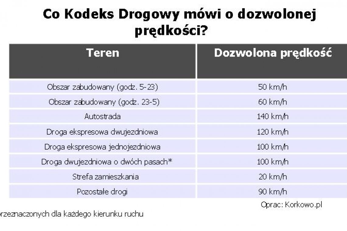 To zdarza się zarówno początkującym kierowcom, jak i tym, którzy spędzili za kółkiem długie lata. Ignorowanie znaków ograniczających prędkość to dla niektórych chleb powszedni. Bywa on bardzo gorzki. Niedostosowanie prędkości do warunków ruchu odpowiada za 1/3 wypadków drogowych spowodowanych przez kierowców! (Policja 2012 r). Tylko jak sprawdzić, czy dobrana przez nas prędkość jest dostosowana do warunków? Odpowiedź na to pytanie wcale nie jest taka prosta, bo co właściwie trzeba brać pod uwagę? Z pomocą przychodzi jednak Kodeks Drogowy. – Artykuł 19 kodeksu nakłada na kierowcę obowiązek jechania z prędkością, która z jednej strony umożliwi mu panowanie nad pojazdem, a z drugiej będzie uwzględniać warunki w których odbywa się ruch – mówi Katarzyna Florkowska z serwisu Korkowo.pl. – Kierowca powinien wziąć pod uwagę w szczególności rzeźbę terenu stan i widoczność drogi, stan pojazdu i jego obciążenie. Do tego dochodzą jeszcze czynniki takie jak warunki atmosferyczne czy natężenie ruchu – wylicza Florkowska. Liczby, które chronią portfelTo jednak nie wszystko. Prędkość jaką obiera kierowca nie powinna utrudniać ruchu innym zmotoryzowanym. Tamowanie drogi poprzez niepotrzebne zwalnianie do 5 km/h nie jest więc dobrym pomysłem. Uczestnicy ruchu powinni pamiętać też o zachowaniu odpowiedniej odległości od innych pojazdów, tak aby w razie hamowania nie doszło do zderzenia. Jeśli znaki nie wskazują inaczej to dopuszczalna prędkość pojazdów na obszarze zabudowanym w godzinach między 5 a 23 wynosi 50 km/h, natomiast w godzinach między 23 a 5 jest nieco wyższa i wynosi 60 km/h. Choć nie wszyscy kierowcy o tym pamiętają to prędkość dopuszczalna pojazdu w strefie zamieszkania nie powinna przekraczać 20 km/h. Samochód osobowy na autostradzie może jechać z szybkością maksymalnie 140 km/h, na drodze ekspresowej dwujezdniowej wartość tę ustalono na wysokości 120 km/h. Na drodze ekspresowej jednojezdniowej oraz na drodze dwujezdniowej co najmniej o dwóch pasach przeznaczonych dla każdego kierunku ruchu pojazd nie powinien osiągać szybkości większej niż 100 km/h. Na pozostałych drogach prędkość dopuszczalna pojazdów wynosi 90 km/h. Na znaki patrz! Kierowcy na trasie nie powinni jednak ślepo trzymać się wyżej wymienionych liczb. Dlaczego? Bo przy drogach znajdują się znaki drogowe, które mogą inaczej określić dopuszczalną prędkość. W praktyce najczęściej ją obniżają. Patrzenie na znaki i rozsądne korzystanie z pedału gazu to decyzja, która może uratować zdrowie, życie i nie ukrywajmy - portfel. Im większe przewinienie, tym większa sankcja. Przekroczenie prędkości do 10 km/h oznacza mandat w wysokości 50 zł i jeden punkt karny, ale już np. przekroczenie prędkości o 51 km/h oznaczać może nawet 500 zł kary i 10 punktów karnych.Źródło: Creandi