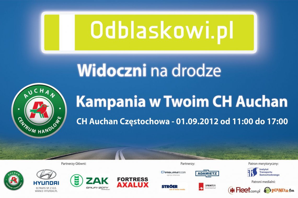 Zadbaj o bezpieczeństwo dziecka w drodze do szkoły Zbliża się nowy rok szkolny, a wraz z nim szara jesień. To czas, kiedy dzieci są narażone na niebezpieczeństwo w drodze do szkoły, czy jadąc rowerem poboczem. Skuteczną ochronę na drodze zapewnia noszenie odblasku, bo zwiększa widoczność nawet o kilkadziesiąt metrów.Już 1 września w CH Auchan Częstochowa rusza ogólnopolska akcja „Odblaskowi.pl" promująca bezpieczne poruszanie się po drogach. Idąc poboczem w ciemnym ubraniu dziecko widoczne jest z około 20 metrów. Jadący z prędkością 90 km/h samochód pokona ten dystans w 1 sekundę – to za mało na skuteczną reakcję. Element odblaskowy na ubraniu zwiększa odległość widoczności dziecka do 150 m, a jeśli kierowca użyje długich świateł, to nawet do 1000 m. Odblaski ratują życie. Ryzyko potracenia pieszego po zmroku maleje nawet 7-krotnie, jeśli korzysta on z elementów odblaskowych. Kierowcy podczas przejeżdżania obok pieszego wyposażonego w odblaski, zachowują odstęp o 20 cm większy niż w przypadku pieszego bez odblasków. Podczas wydarzenia "Odblaskowi.pl" w CH Auchan w Poczesnej (Częstochowa), ale i w 11 innych miastach Polski dzieci i rodzice dowiedzą się, jakie są zasady ruchu drogowego i jak stać się bardziej widocznym dla kierowców. Otrzymają także materiał edukacyjny, który ukształtuje poprawne nawyki poruszania się po drodze. Dodatkowo zostanie rozdanych 1000 opasek odblaskowych zwiększających widoczność, a co za tym idzie - bezpieczeństwo na drodze. Na stronie www.odblaskowi.pl dzieci będą mogły wraz z rodzicami i Panem Sową przeszkolić się z zasad bezpieczeństwa dzięki specjalnie uruchomionej platformie e-learning'owej. Atrakcje i konkursy dla dzieci w CH Auchan będą trwać 1 września, od godziny 11.00 do 17.00. Patronem głównym akcji są Centra Handlowe Auchan, Eltrans sp. z o.o. Dealer marki Hyundai, Zakłady Azotowe Kędzierzyn-Koźle oraz Fortress Axalux. Patronat medialny nad akcją objęło Radio Planeta i Magazyn Flotowy Fleet.