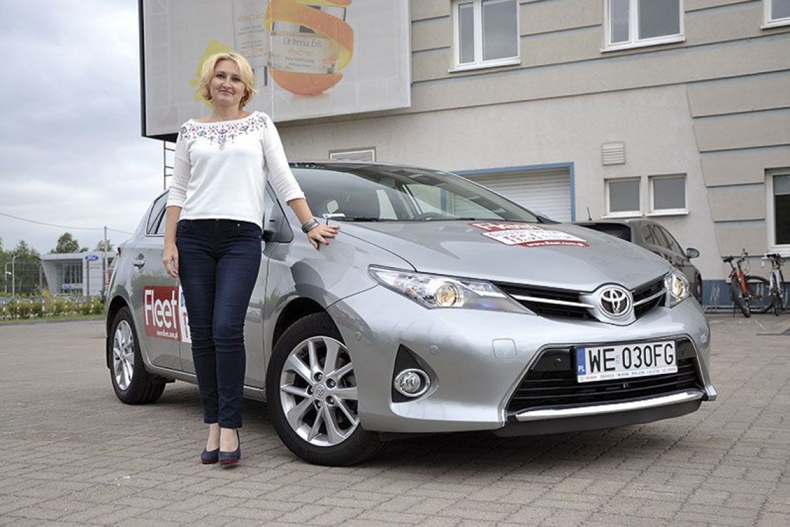Dostałam samochód. Do testów. Po załatwieniu stosownych formalności, podpisaniu umowy, strzeleniu kilku fotek (dla kobiety to zawsze najbardziej stresująca część) odebrałam kluczyki do Toyoty Auris 1.4D-4D, w wersji Premium... Natasza Jarońska-Ignatiukspecjalista ds. floty i kontaktów z instytucjami finansowymi, Laboratorium Kosmetyczne Dr Irena Eris Sp. z o.o., członek SKFS W testowanej w ramach Długodystansowego Testu Flotowego Toyocie poczułam się jak w domu. Miałam kiedyś Toyotę Corollę i chociaż zmiany w Aurisie nastąpiły znaczne, łącznie z nazwą, duch marki pozostał. Samochód ma ciekawą sylwetkę. Styliści mogliby jeszcze tylko trochę popracować nad zbyt przysadzistym tyłem.Na początku zajrzałam do bagażnika, to w mojej firmie jedno z ważniejszych kryteriów wyboru samochodu. Niestety, 360 litrów nie powala. Należy tu wspomnieć o podwójnej podłodze, która niektórym potrzebna jest do porządkowania przestrzeni, schowania laptopa, dla mnie jest to niepotrzebny pożeracz przestrzeni. Użytkownikom flotowym, jak również mojej trzyosobowej rodzinie, przydałoby się jeszcze przynajmniej 150 litrów. Dopiero po złożeniu tylnych siedzeń powstaje dużo większa przestrzeń załadunkowa 1200 litrów i to na płaskiej (duży plus) powierzchni. Dla takich jak ja, bardziej sprawdziłby się Auris kombi, którego notabene można już zamawiać.Bagażnik obejrzałam, czas na tylną kanapę. Zazwyczaj moim testerem drugiego rzędu siedzeń jest potomek, niestety, z powodu wakacji nieobecny w domu. Sama więc zasiadłam na tylnej kanapie, gdzie od razu zauważyłam brak kieszeni bocznej w drzwiach, w których zazwyczaj walają się komiksy i zabawki. Dobrze, że jest chociaż miejsce na małą butelkę, a w oparciu przednich foteli są kieszenie. Duży plus za dwa otwory na kubeczki w podłokietniku tylnym. Niestety, nie ma otworu na długie przedmioty, a szkoda. Miejsca z tyłu jest dużo, przynajmniej dla osoby o mojej posturze, aby być obiektywną, posadziłam tam również dużo większego ode mnie męża. Mieści się. Miejsca na nogi jest pod dostatkiem, pod warunkiem, że z przodu siedzi osoba drobniejsza. Osoba siedząca w środku, nie będzie mogła przyjąć zbyt komfortowej pozycji, ale cieszy brak progu pod nogami.Ponieważ samochód flotowy służy głównie do przewożenia jednej osoby, kierowcy, skupiłam się na tym właśnie fotelu. Siedzenie jest wygodne, ma regulację w dwóch płaszczyznach oraz dobre trzymanie boczne. Dużym plusem jest podparcie lędźwiowe. To istotne, ponieważ choroby kręgosłupa to już u nas plaga, więc dziwi brak regulacji lędźwiowej w samochodach niższych klas, którymi jeżdżą przedstawiciele handlowi. A oni przecież spędzają najwięcej czasu za kółkiem.Uwielbiam podgrzewane fotele (tu za dopłatą w pakiecie Comfort za 3700 zł), ale tego gorącego lata nie miałam okazji ich wypróbować. Za to sprawdziłam klimatyzację, która działała w tym aucie świetnie.Kokpit Toyoty Auris jest prosty i czytelny, pozwalając na intuicyjne korzystanie z oferowanych przełączników. Największy minus to zegarek, umiejscowiony hen, hen przy fotelu pasażera i za nisko umieszczony wyświetlacz nawigacji. W standardzie tej wersji znalazły się skórzana gałka dźwigni zmiany biegów i skórzana, bardzo poręczna kierownica z przyciskami do sterowania systemami audio i odbierania telefonu.Cieszę, się, że na wyposażeniu jest również gniazdo USB, dla mnie, maniaczki audiobooków, absolutnie niezbędne w samochodzie. Przydałaby się lepsza widoczność do tyłu, dobrze, że na wyposażeniu jest kamera cofania. Bardzo spodobał mi się przesuwany podłokietnik, często mam ten problem, że nie dosięgam do niego łokciami. Wersja, którą jeździłam, miała również asystenta parkowania. Bardzo pomocna rzecz na naszych zatłoczonych ulicach.Okres wakacyjny, pogoda przepiękna, weekend zapowiadał się słoneczny, więc zaraz zaczęłam planować, gdzie się wybrać samochodem w weekend, by przejechać się i autostradą, i drogami lokalnymi. Wybór padł na znajomych pod Wrocławiem.Zanim jednak nastał weekend, pojeździłam trochę po mieście. Po uruchomieniu samochodu do moich uszu dobiegł przyjemny dieslowski pomruk. Samochód jest zwinny i posłusznie poddaje się woli kierowcy, dynamicznie przyspiesza, bez problemów udawało mi się wykorzystywać powstające na trzypasmowej Puławskiej luki między samochodami. Ze wstydem przyznaję, że nie jeżdżę bardzo ekonomicznie, lubię dynamiczną i szybką jazdę, więc nie zaskoczyło mnie spalanie – średnio 6 l/100 km. Producent w cyklu miejskim obiecuje 4,5 l/100 km, ale wszyscy wiemy, że zawsze obiecują mniej). W samochodzie zainstalowany był system monitorowania firmy Juwentus, tam też potwierdziłam wskazania komputera pokładowego, że moim najlepszym wynikiem, kiedy starałam się jechać bardzo ekonomicznie, było 5,3 l/100 km.Na autostradzie też nie lepiej, ale myślę, że wynika to z tego, że chciałam sprawdzić zachowanie samochodu przy prędkościach maksymalnie dopuszczalnych. Obniżony środek ciężkości powoduje, ze samochód świetnie trzyma się drogi, nie trzęsie, gładko wchodzi w zakręty, dynamicznie przyspiesza. Pomaga mu w tym dobrze zestopniowana manualna skrzynia biegów. Bardzo przydał się 6. bieg. Brakowało tu tylko tempomatu (można go zamówić jako opcję dodatkową ze skrętnymi lampami biksenonowymi za 5 tys. zł).Aurisa w wersji Premium można zamówić już od 66 400 zł. Do niego możemy domówić promocyjny pakiet Comfort za 1990 zł (m.in. podwójna podłoga w bagażniku, system automatycznego parkowania, podgrzewane fotele).Podsumowując, Aurisem przejechałam około tysiąca kilometrów i, według mnie, ten porządny japończyk, choć powstający w Wielkiej Brytanii, jest wygodnym narzędziem pracy dla przedstawiciela handlowego. Tym kompaktem jeździ się bardzo dobrze, długie dystan