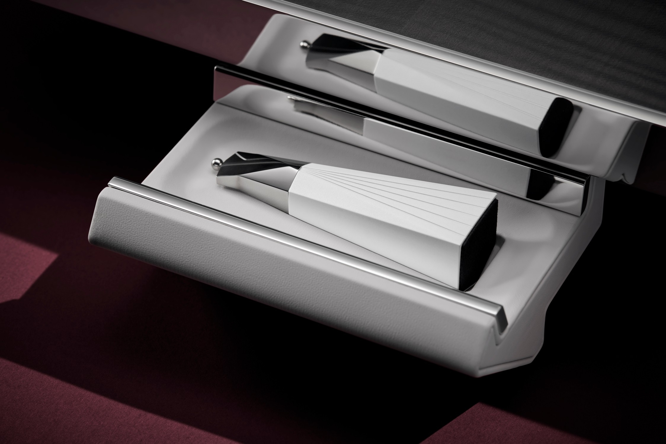 Zestaw do gry w szachy został zaprojektowany tak, aby uchwycić wrażenie ruchu: pokryta skórą podstawa delikatnie unosi się od środka, nawiązując do falistych linii samochodów marki, ponieważ wydaje się unosić na swojej wąskiej podstawie.